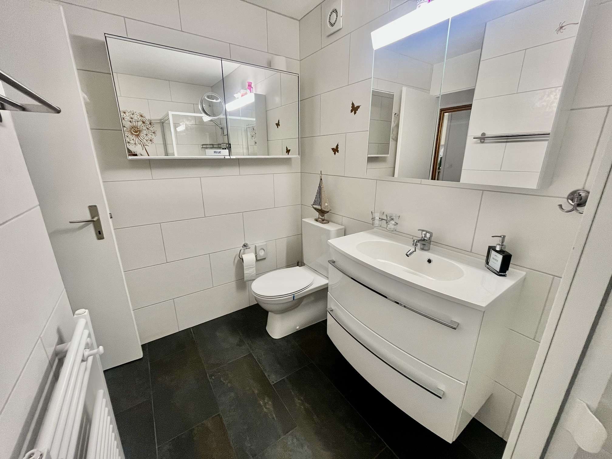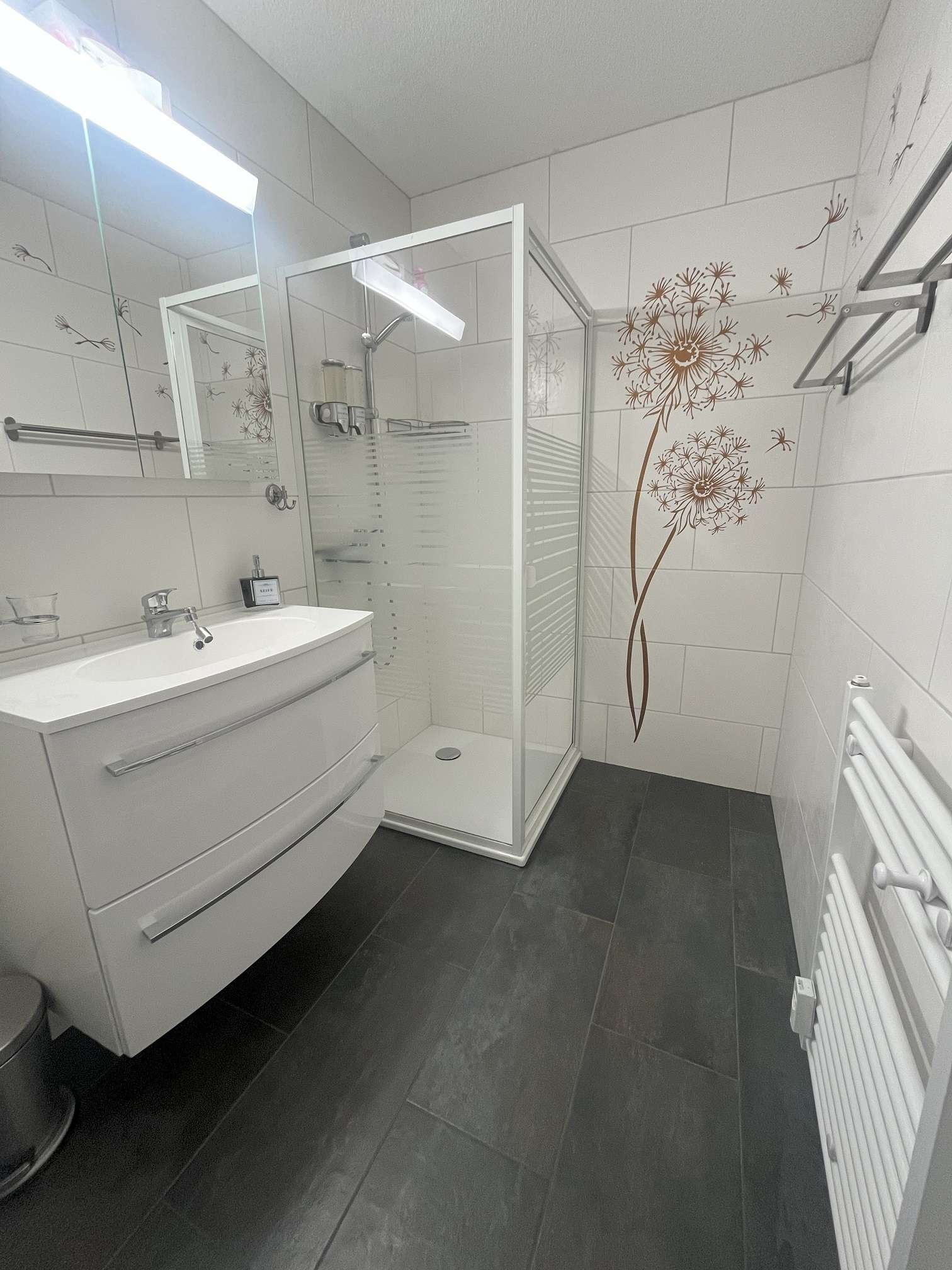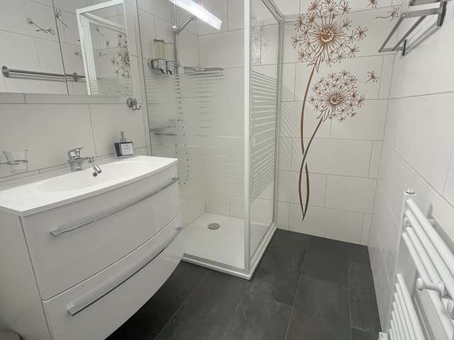 * Modernes Bad mit Dusche, Waschtisch und WC