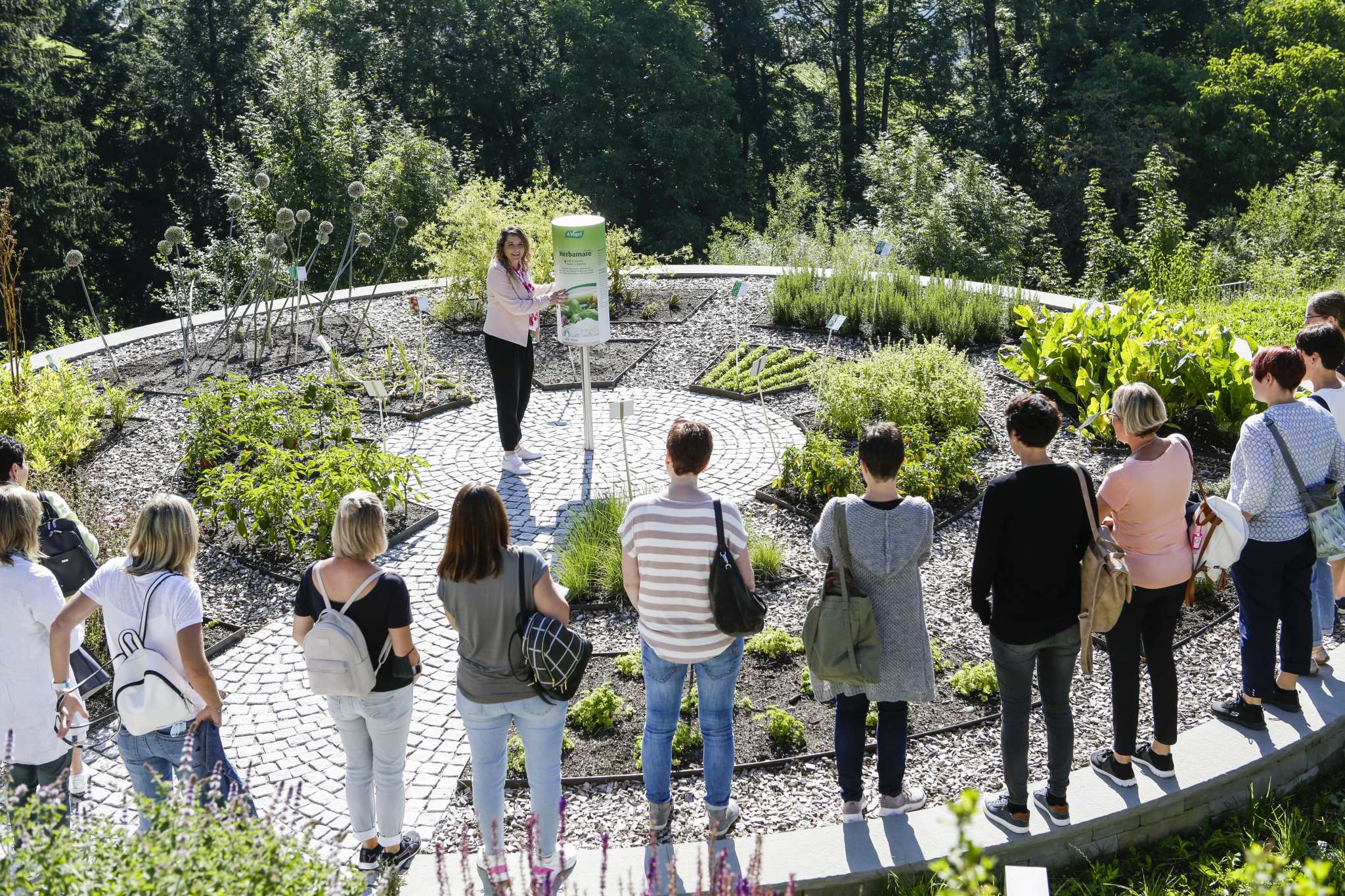 Im terrassenförmig angelegten, frei zugänglichen A.Vogel Schaugarten auf dem Hätschen in Teufen AR gedeihen rund 120 verschiedene Heil- und Küchenkräuter.