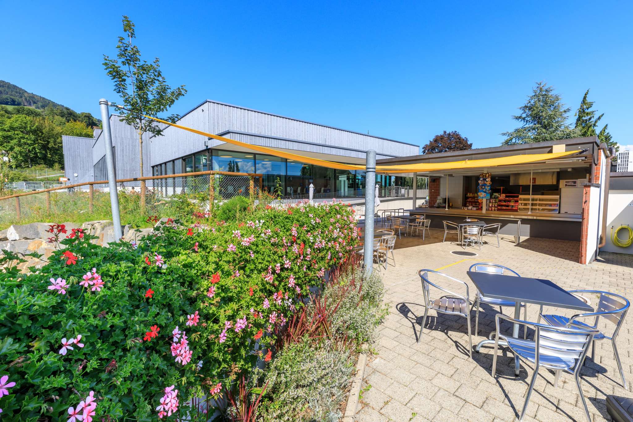 Das Freibad ist angeschlossen an das Hallenbad. Dank dem Kombi-Tarif kann das Hallenbad mit seinen Anlagen auch im Sommer genutzt werden.