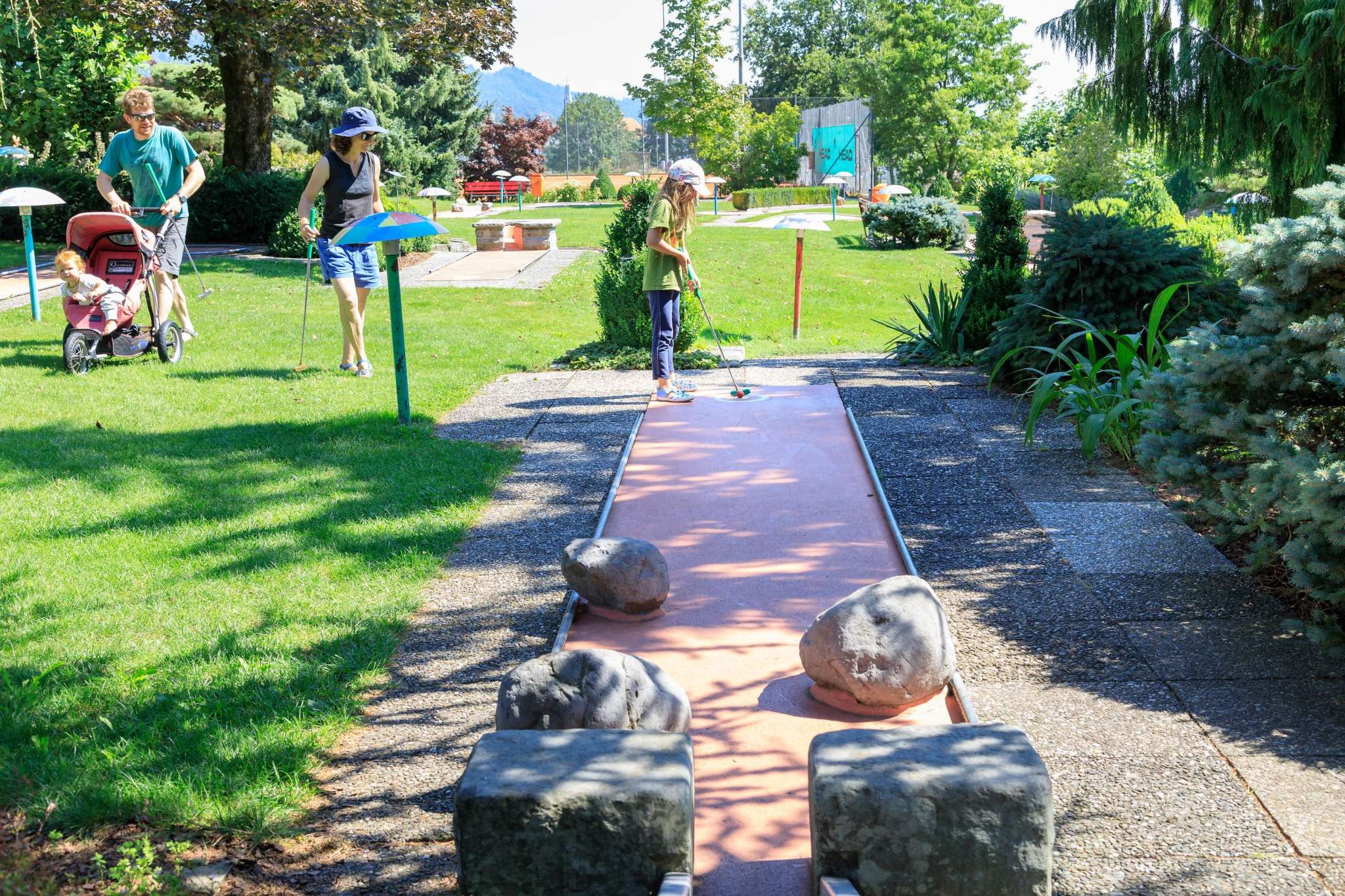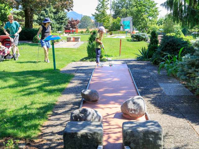 Lust auf eine Partie Minigolf mit Familie oder Freunden? Die Minigolfanlage mit 18 Bahnen ist bei gutem Wetter in Betrieb.