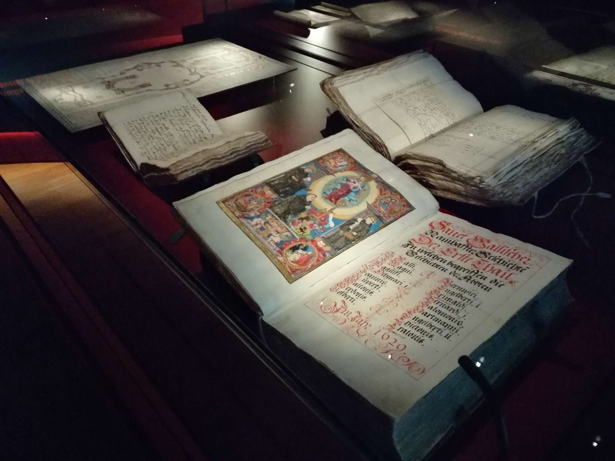 Die Ausstellung "Das Wunder der Überlieferung – Der St.Galler Klosterplan und Europa im frühen Mittelalter" befasst sich mit der einmaligen Überlieferungsdichte von Dokumenten des Frühmittelalters in St.Gallen. Dabei stehen die Rechtsdokumente, die im Stiftsarchiv St.Gallen erhalten geblieben sind, im Vordergrund, darunter auch zwei Verbrüderungsbücher und das einzige überlieferte Professbuch der Karolingerzeit. Wechselausstellungen mit thematisch ausgewählten Urkunden geben Einblicke in die Lebenswelten des frühen Mittelalters.