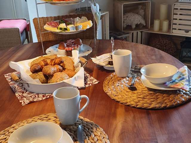 Die kleine aber feine Gästewohnung im ersten Stock verfügt über Himmelbett, Wohnstube, kleine Küche, Bad und Waschmaschine. Auf der Sonnenseite des Randensüdfusses gelegen ist es ein idealer Ausgangspunkt für Wanderungen auf dem Randen und durch die Rebberge, für Weindegustationen in der dorfeigenen Trotte, zum Velofahren, Biken, Motorradtouren, den Rheinfall zu entdeckten und für Schifffahrten auf dem Rhein.