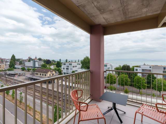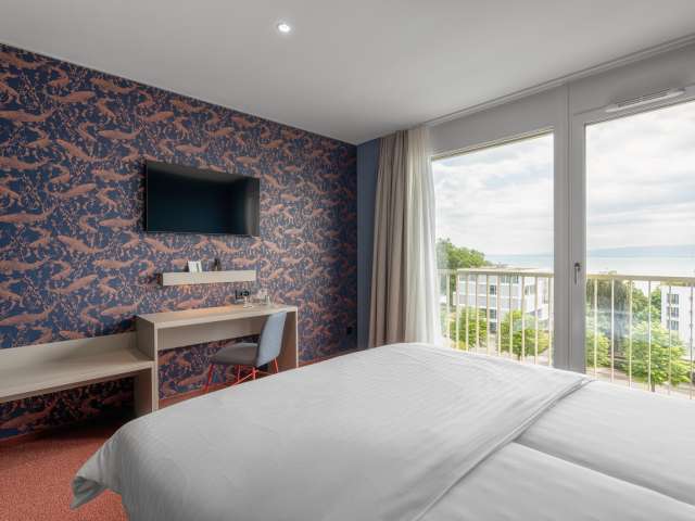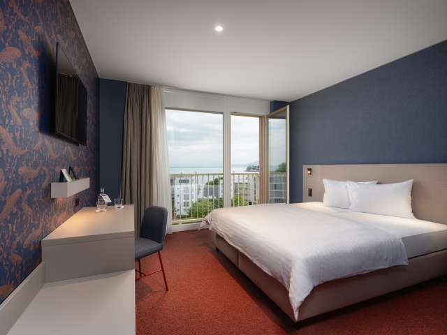 Die 63 Zimmer und Suiten überzeugen mit einem einladenden und smarten Design. Die Kategorien «Seesicht» befinden sich in den oberen Stockwerken mit Sicht auf den Bodensee. Der Fitness- & Wellnessbereich ist bewusst im obersten Stockwerk mit direktem Ausblick auf den Bodensee eingerichtet - so kommen alle Gäste in den Genuss dieses einzigartigen Ausblickes. Dank dem Self Check-in und Check-out by b_smart können Gäste rund um die Uhr flexibel anreisen und in sekundenschnelle auschecken.
