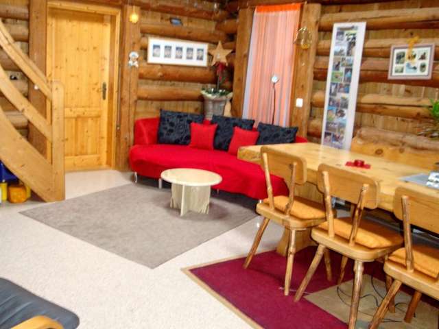 Die Ferienwohnung im ersten Stock ist gemütlich und sehr rustikal eingerichtet. An den Wänden und Decken sind Holzbalken sichtbar. Zur Wohnung gehört eine Veranda.