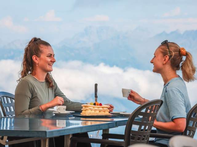 Das Berggasthaus Prodkamm am Flumserberg ist ein Ort, an dem Sie sich kulinarisch verwöhnen lassen können. Mit seinen authentischen, monatlich wechselnden Pasta- und Salatangeboten sowie der Speisekarte mit regionalen und traditionellen Gerichten bietet das Restaurant eine vielfältige Auswahl an Köstlichkeiten. Das Restaurant verfügt zudem über eine grosse Sonnenterrasse, auf der Sie Ihre Mahlzeiten im Freien einnehmen und dabei die atemberaubende Aussicht auf die umliegende Berglandschaft geniessen.