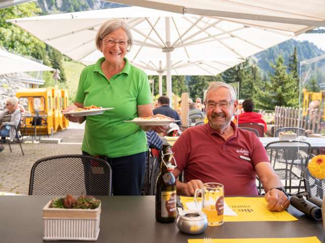 Der Blick über den Tellerrand hinaus verspricht ein spektakuläres Bergpanorama. Sie werden sehen - und sitzen bleiben. Im gemütlichen Bergrestaurant auf 1'801 M.ü.M.