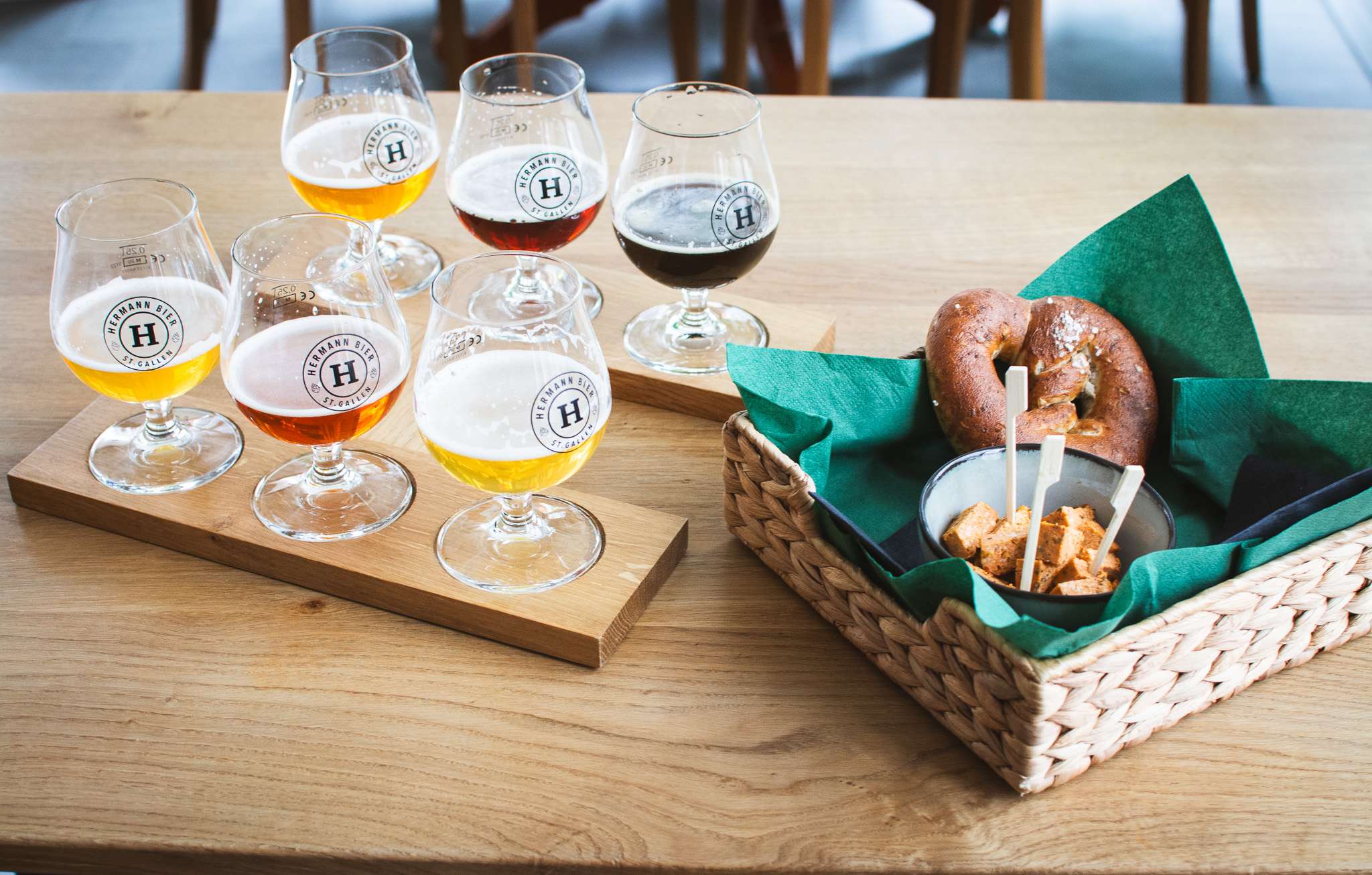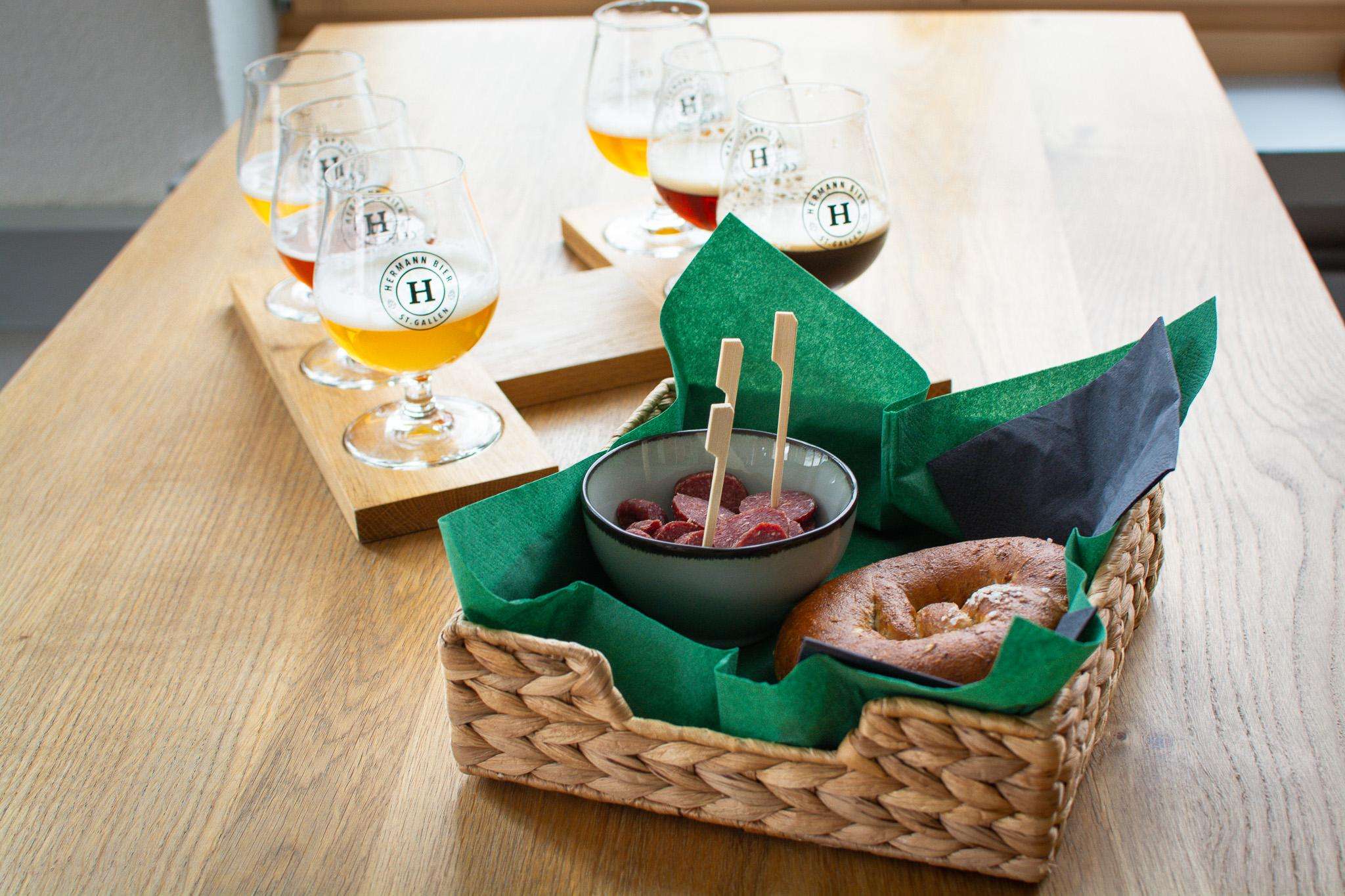 6 Biere degustieren und Snack inkl. Treberbrezel geniessen im HERMANN Bier