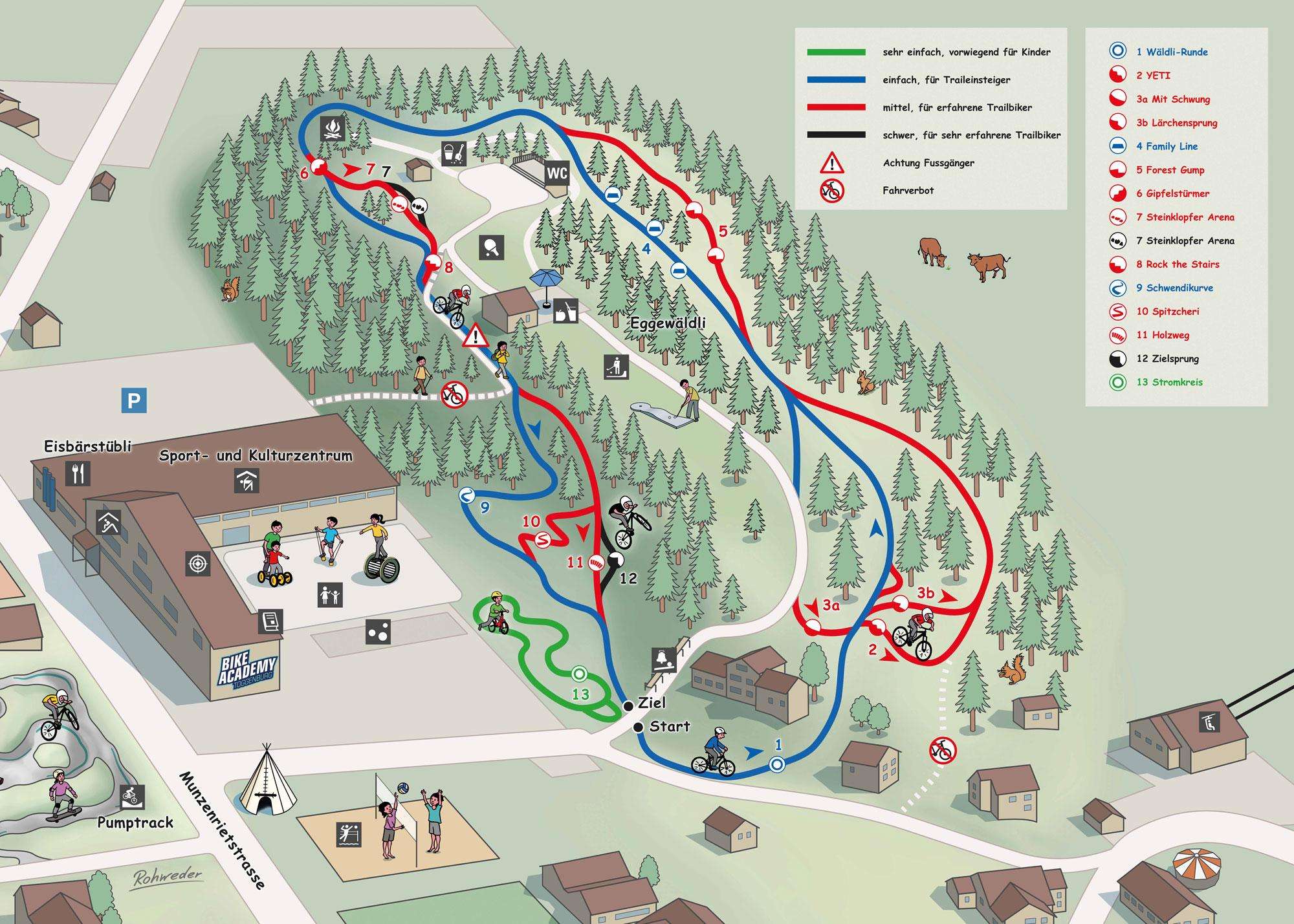 Die Bike Academy Toggenburg Trails bilden einen vielseitigen Bike Skillspark im idyllischen Eggewäldi.