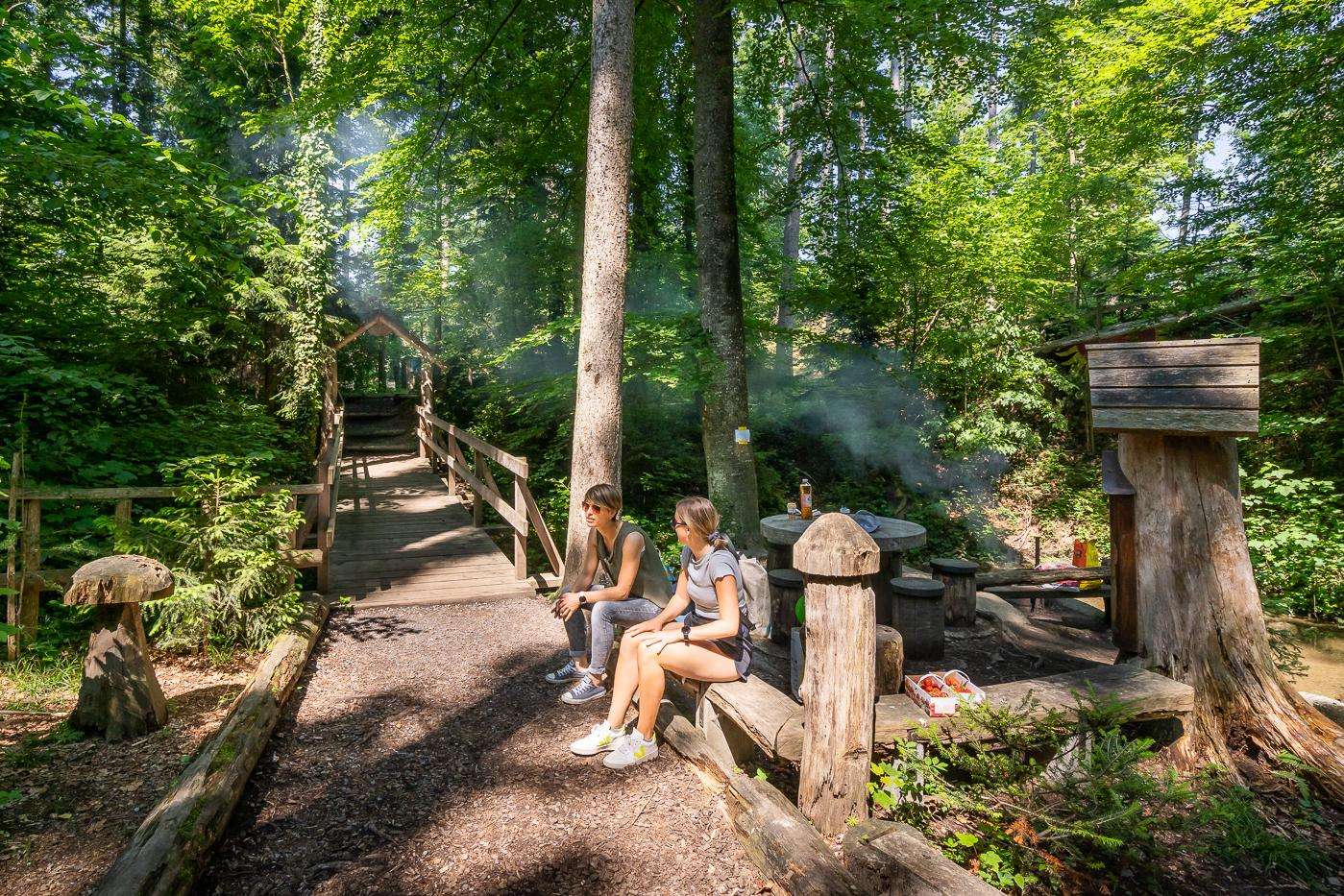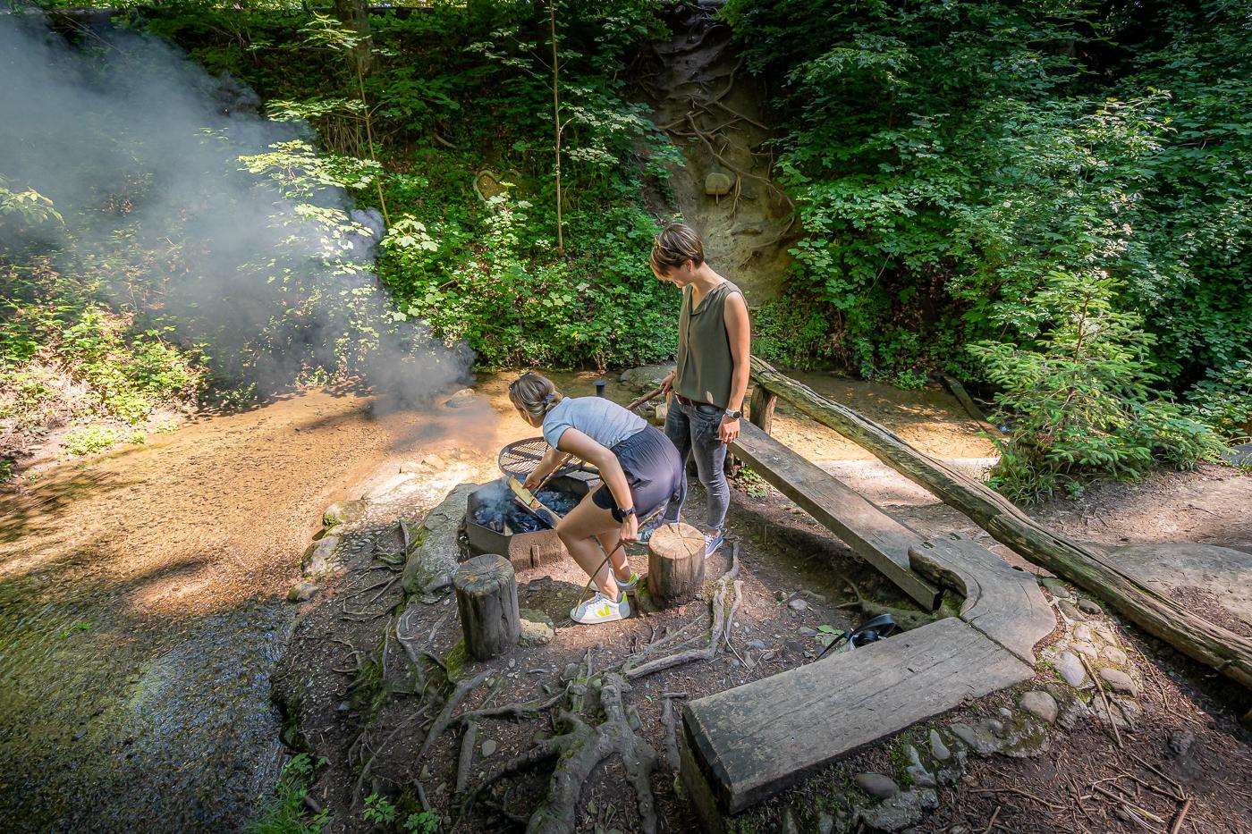 Im schattigen Blauhölzliwald in Häggenschwil lässt es sich bei heissen Temperaturen besonders gut Verweilen, denn ein Bach lädt zur Erfrischung ein. Gleich nebenan befindet sich die Feuerstelle mit Tisch und Bank sowie ein Spielplatz zum Austoben. Für Familien mit Kindern ist dieser Zwischenstopp auf einer Velotour ein Muss.