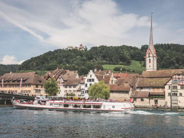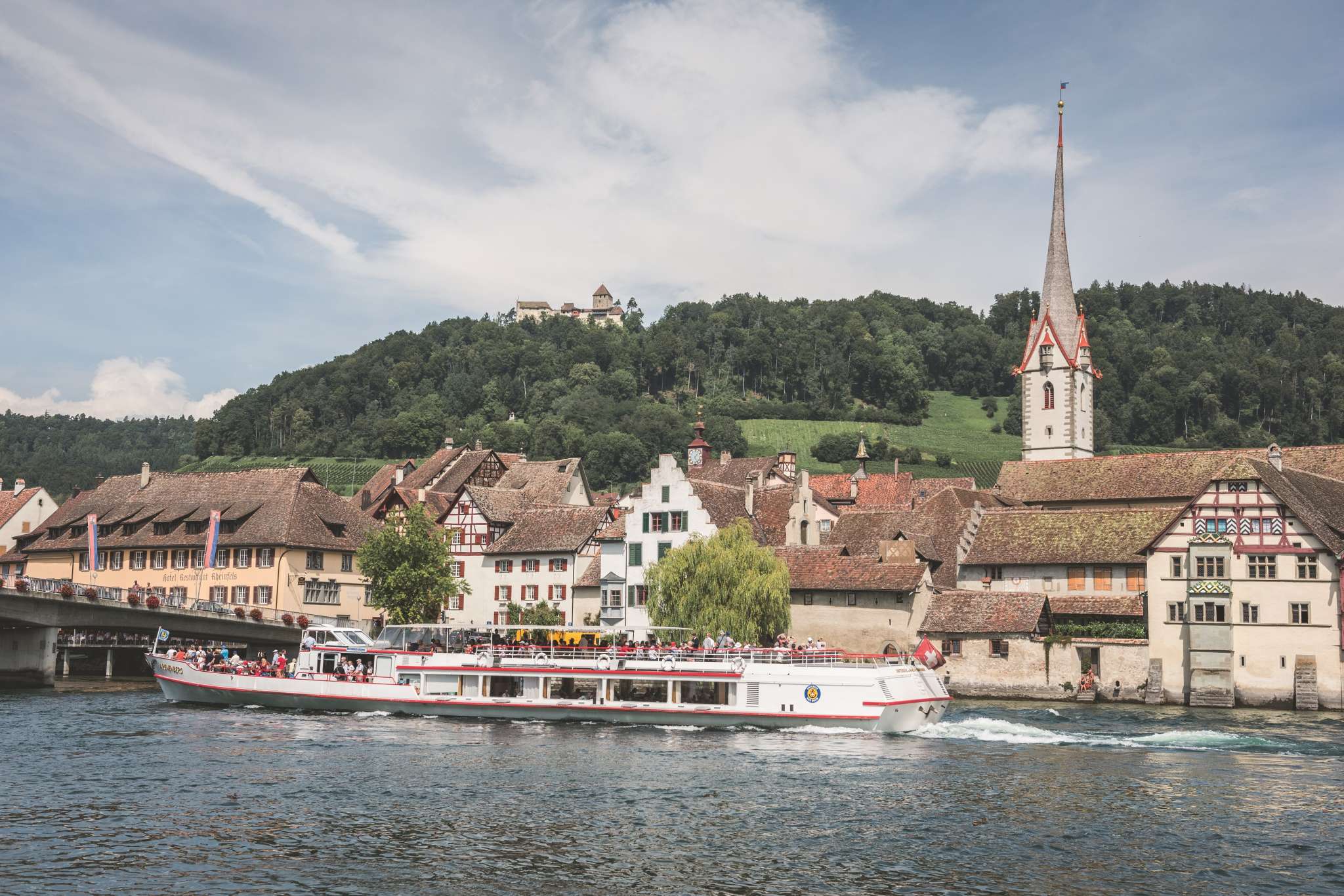 Angenehm von der Strömung getragen, gleitet man auf der dritten Etappe vorbei an historischen Häusern und imposanten Klosteranlagen sowie an zahlreichen am See gelegenen Gaststätten. Am Ziel angekommen, lohnt sich ein Besuch auf dem Munot, einer alten Festungsanlage sowie eines der Highlights in Schauffhausen. Zu guter Letzt bietet der Rheinfall ein eindrückliches Naturspektakel, welches auch vom Boot aus beobachtet werden kann.