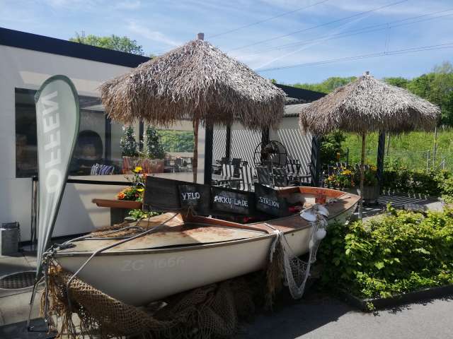 Es gibt Stellplätze für Wohnwagen und -mobile und auch für Zelte. Gäste können auch in den Podhouses übernachten. Eine schöne Gartenwirtschaft lädt zum Verweilen ein.