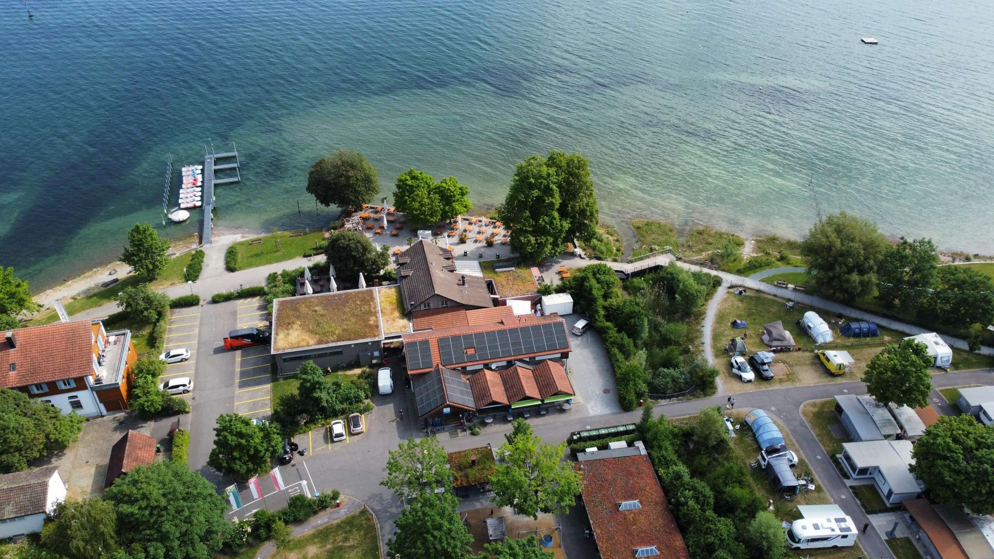 Direkte Seelage, eine moderne, barrierefreie und familienfreundliche Anlage, Thurgauer Natur pur und die nahe Kulturstadt Kreuzlingen erwarten Besuchende auf dem grosszügigen Campingplatz Fischerhaus. Und natürlich die farbenfrohen Fischerhäuschen für alle ohne Zelt oder Camper.