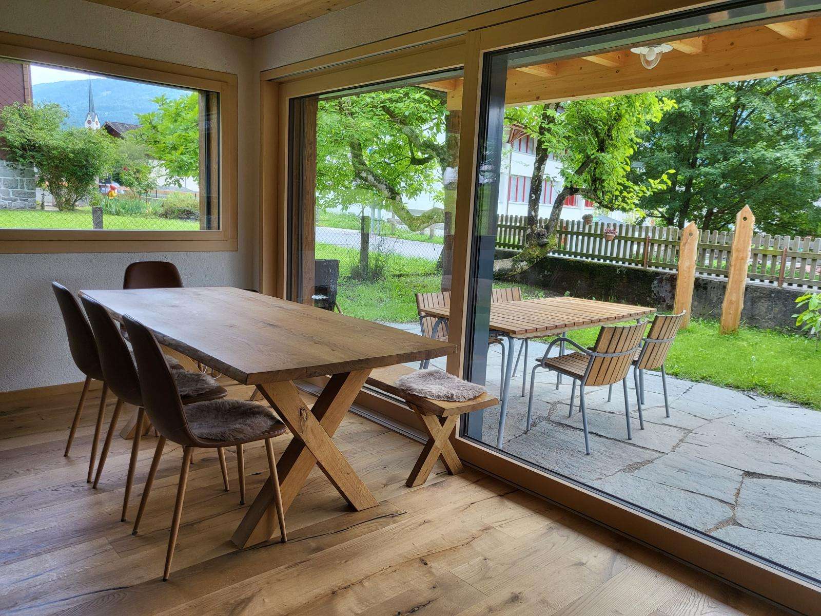 Der 3.5-Zimmer-Bungalow liegt mitten im Dorf Berschis und bietet schöne Bergsicht. Die Nähe zu Walensee, Flumser Bergen und Bad Ragaz lädt zur Erholung ein.