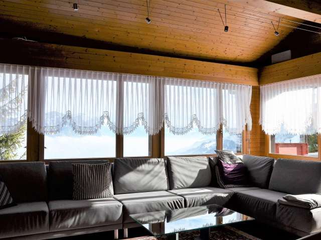 Das Haus verfügt über 3 holzvertäfelte Schlafzimmer (zwei mit Doppelbett, eines mit Kajütenbetten), ein Badezimmer mit Dusche, Closomat und Doppellavabo sowie ein weiteres separates WC. In der geräumigen, voll eingerichtete Küche macht kochen sogar im Urlaub Spass und der grosse ausziehbare Esstisch mit gemütlicher Eckbank eignet sich bestens für gesellige Abende mit Familie und Freunden. Highlight ist der grosszügige und offene Wohnbereich mit herrlicher unverbauter Aussicht auf die Alivierkette, die Churfirsten und freiem Blick über das Sarganserland.