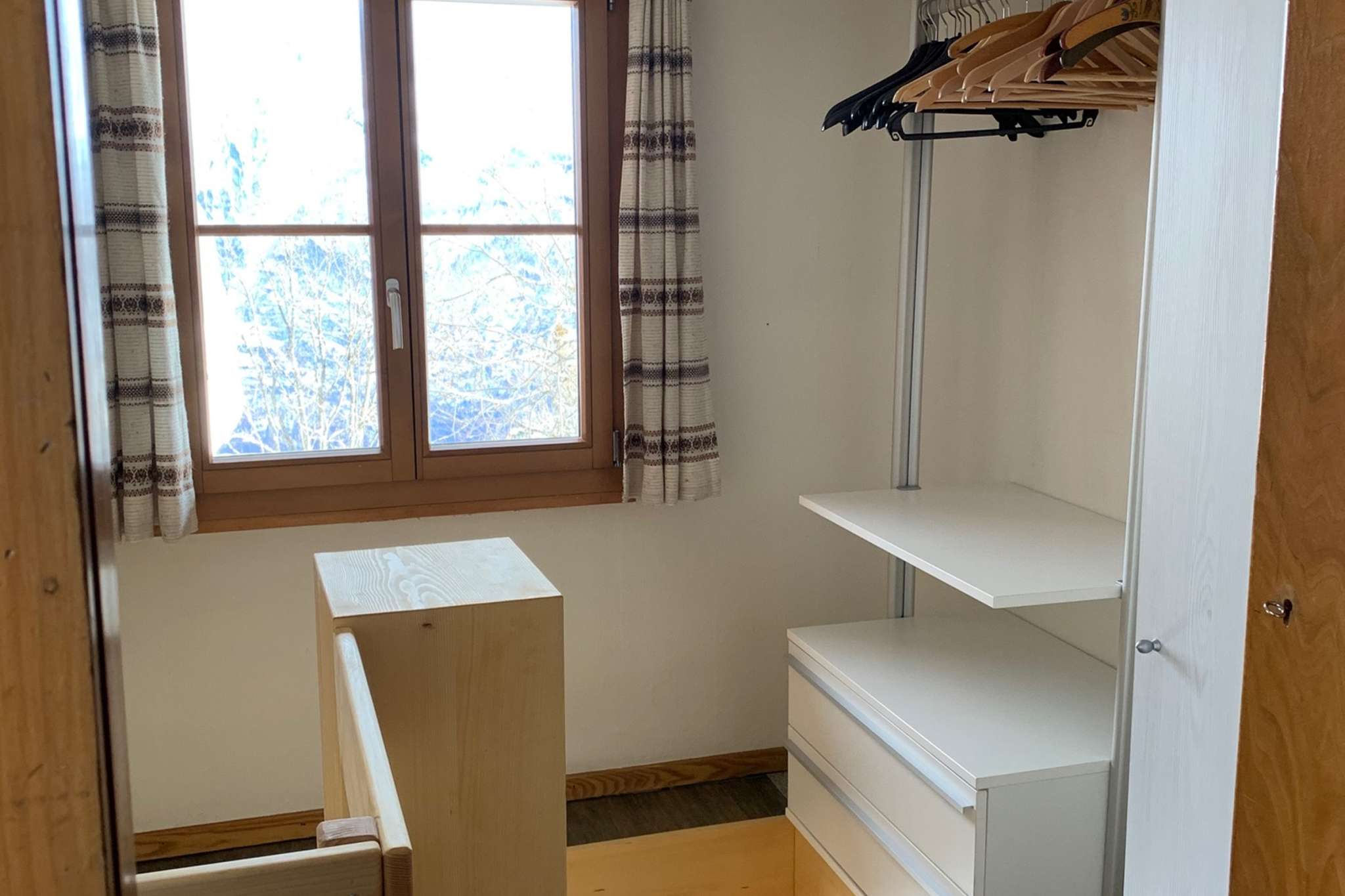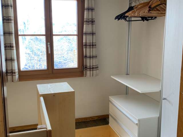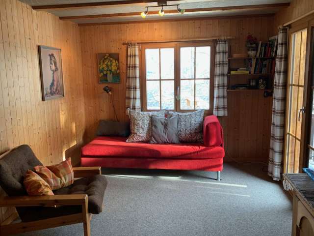 Die Wohnung ist zweckmässig eingerichtet und verfügt über einen Wohnbereich mit Sofa und eine Kochgelegenheit. Bad mit Dusche und WC.
