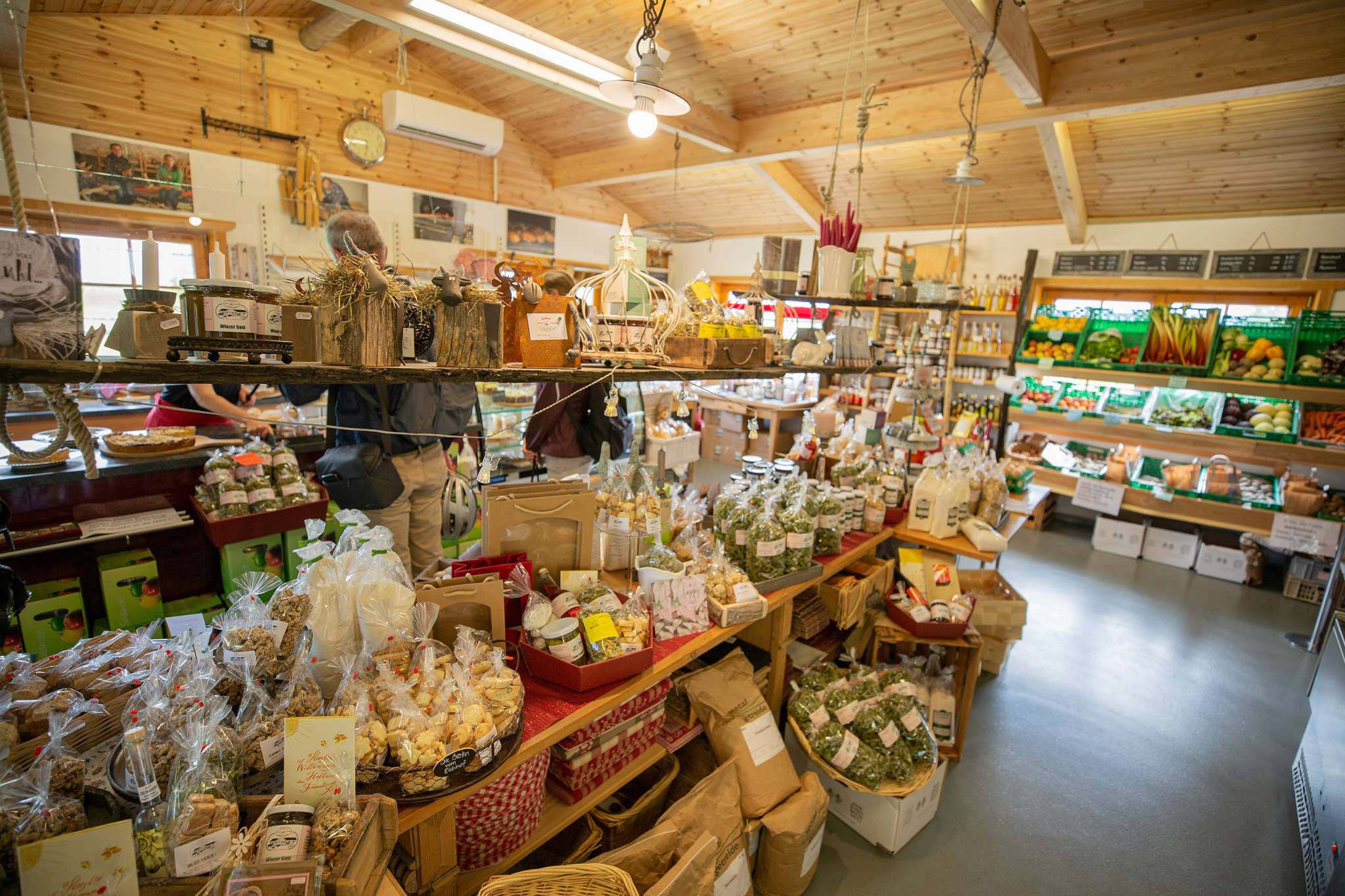 Der Hofladen und das Hofcafé wurden 2011 gebaut. Der Schwerpunkt des Sortiments liegt auf hofeigenem Fleisch sowie dem eigenen Wein.