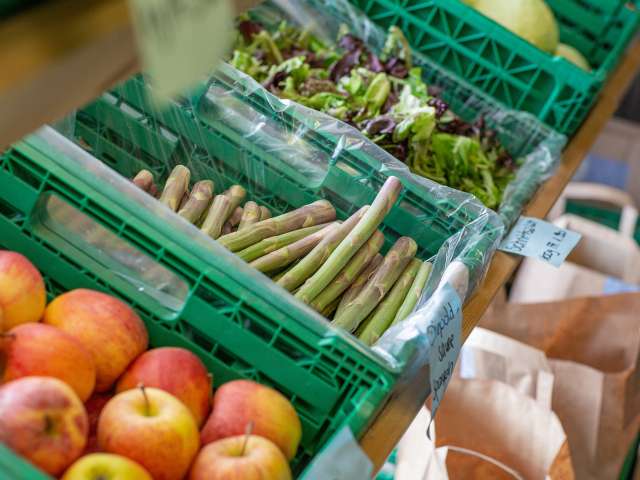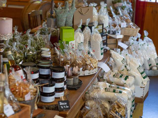 Das breite Angebot besteht grösstenteils aus eigenen Produkten, dazu gehören Gebäck, Konfitüren, Eingemachtes und vieles mehr. Daneben werden einige Produkte wie frisches Gemüse und Früchte, Milchprodukte oder Mehl von Bauern und Lieferanten aus der Region zugekauft.