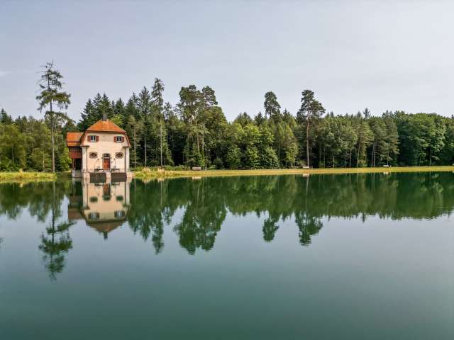 Der künstlich angelegte Weiher war 1907 das erste Pumpspeicherwerk der Schweiz und wurde dazumal praktisch in Handarbeit angelegt.