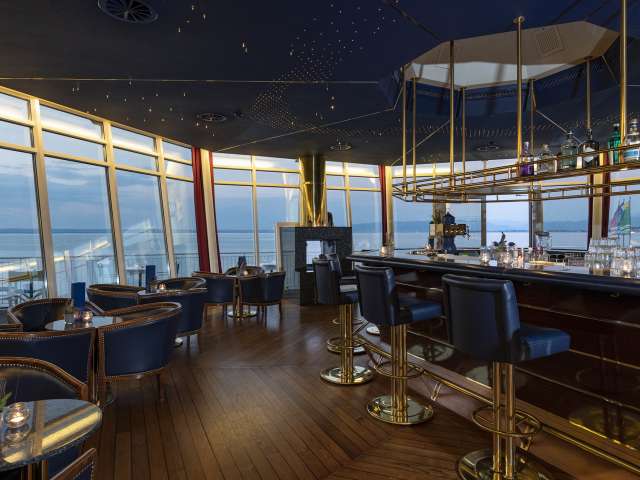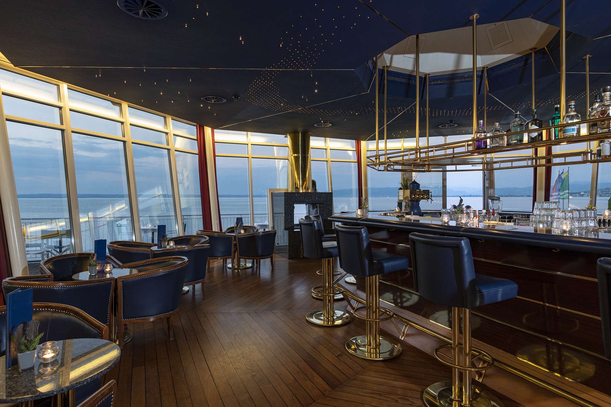 In der «Faro Bar» haben die Gäste immer freie Sicht auf die Sterne. 1500 Lichter erhellen die Decke in acht Sternbildern. Das Besondere ist der Leuchtturm, welcher der M.Y. «Emily» den Heimweg weist.