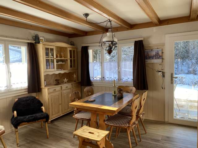 Zwei Terrassen, je 1 vor und hinter dem Haus. Grosser Garten mit Aussencheminée. Ein gemütlicher Sitzplatz befindet sich direkt unten am Weissbach mit Feuerstelle. Neben dem Haus befindet sich für kühle Abende ein Sitzplatz mit Feuersäule für sechs Personen. Parkplätze vorhanden. Waschmaschine/Tumbler. Tischtennistisch.