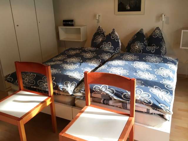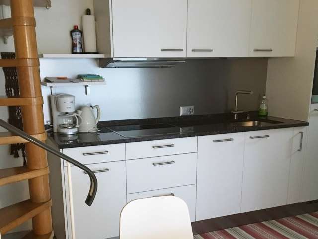 Das Ferienhaus ist modern und gemütlich eingerichtet. Der Wohn-/Essbereich verfügt über einen Plattenboden, die Schlafzimmer über einen Parkettboden. Im Erdgeschoss befindet sich eine Wendeltreppe ins Obergeschoss (nicht geeignet für kleine Kinder).