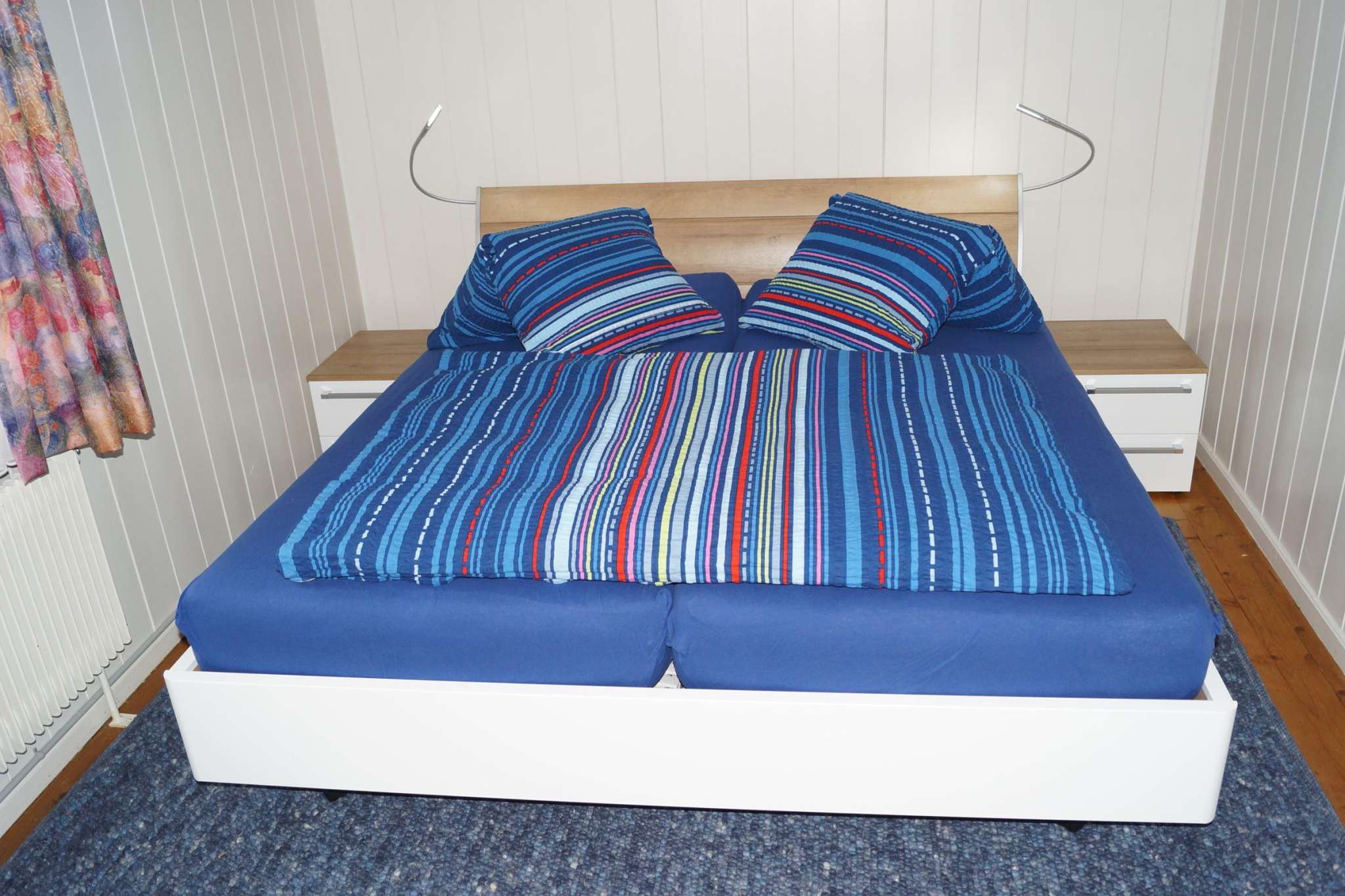 Das Ferienhaus ist komfortabel eingerichtet und sehr heimelig. Die Schlafräume im oberen Stock verfügen über einen schönen Holzboden.