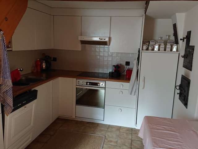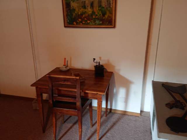 Ehemalige Gaststube mit historischem Gusseisenofen und versenkbaren Fensterläden als Wohn-/Esszimmer, drei charmante Schlafzimmer, Küche, Badezimmer und separates WC. Kugelgrill, diverse Gartenstühle usw. sind zur freien Benutzung, Autoabstellplatz (nicht überdacht).