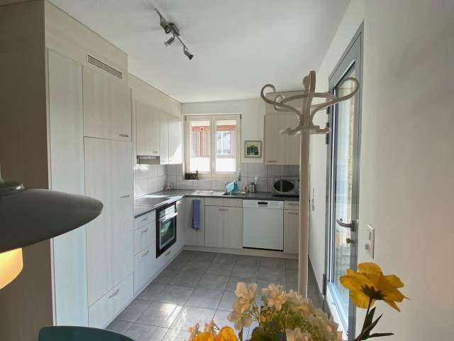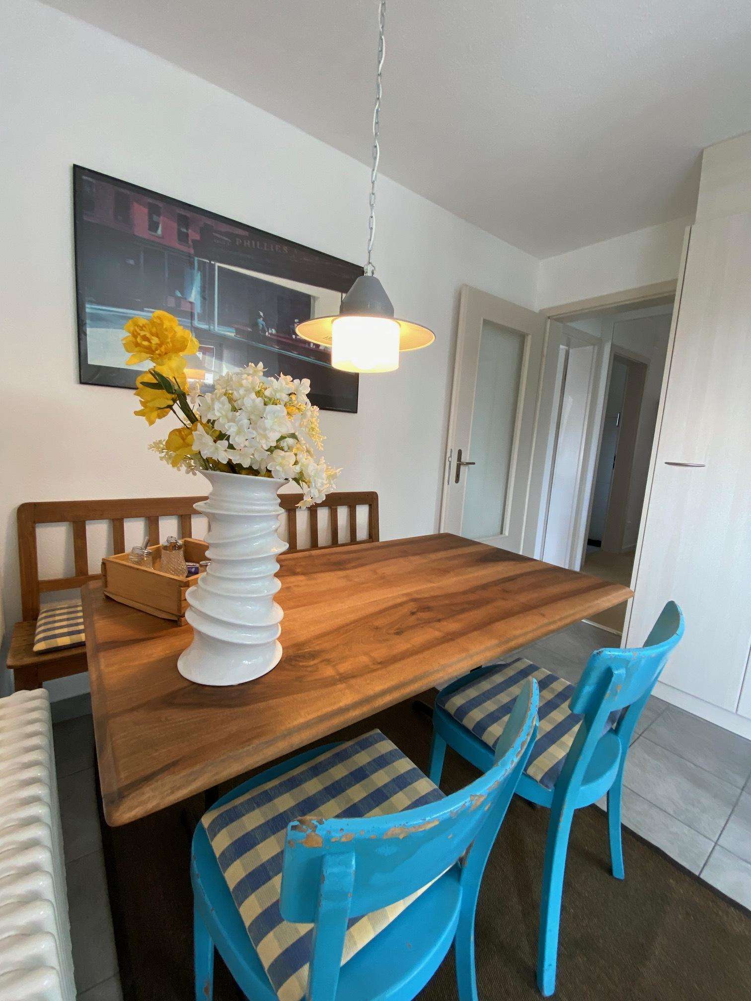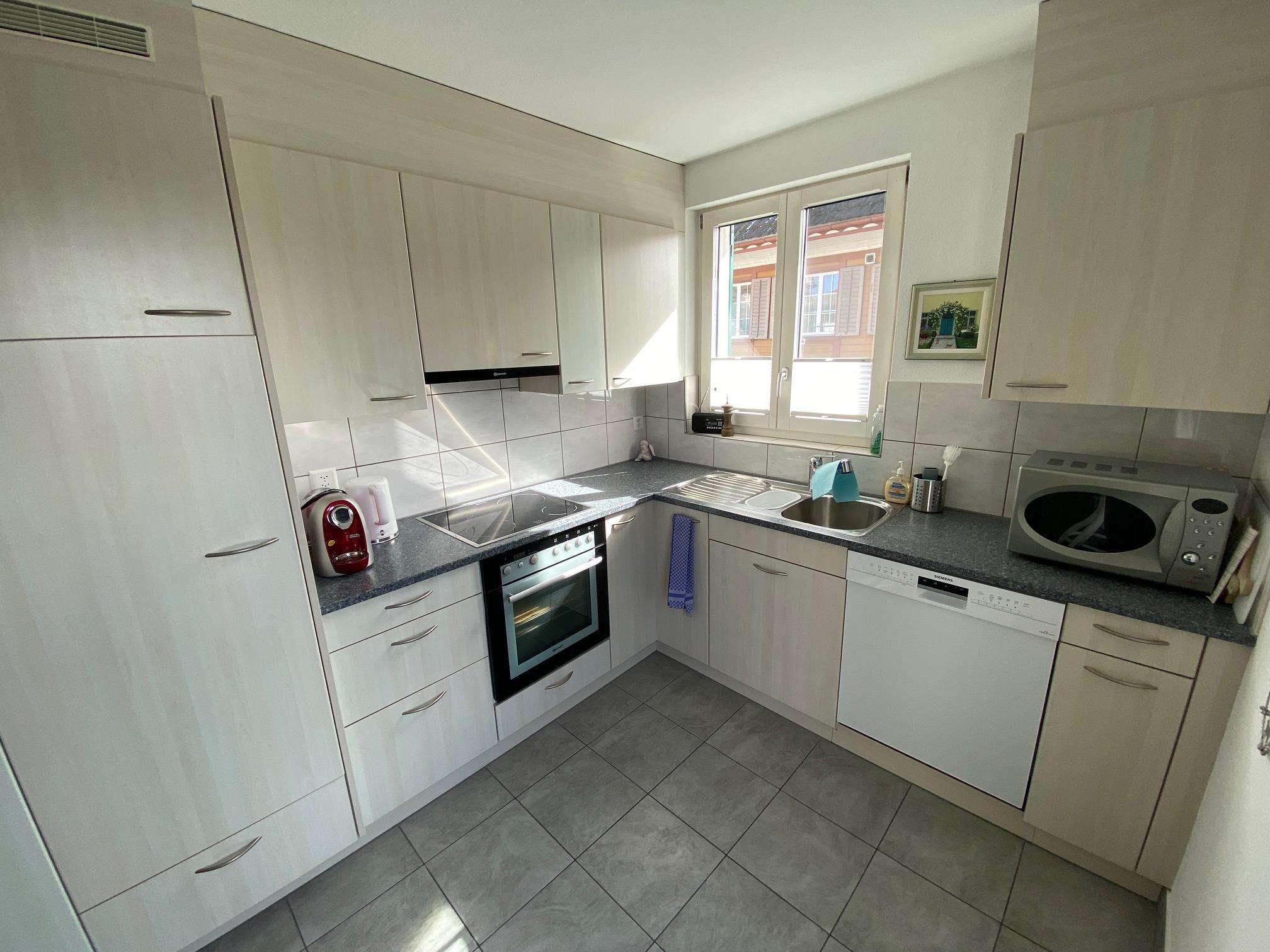 Die Gastgeber sind zwei humorvolle, offene und hilfsbereite Personen, die im selben Gebäude wohnen. Der separate Eingang über eine Aussenwendeltreppe führt direkt in die gemütliche und gut ausgestattete Wohnküche. Dort stehen ein Mikrowellengerät sowie eine Kapselkaffeemaschine mit einer Auswahl an Kapseln pro Übernachtungstag zur Verfügung. Es gibt auch eine Auswahl an Gewürzen, Tee, Essig und Öl.