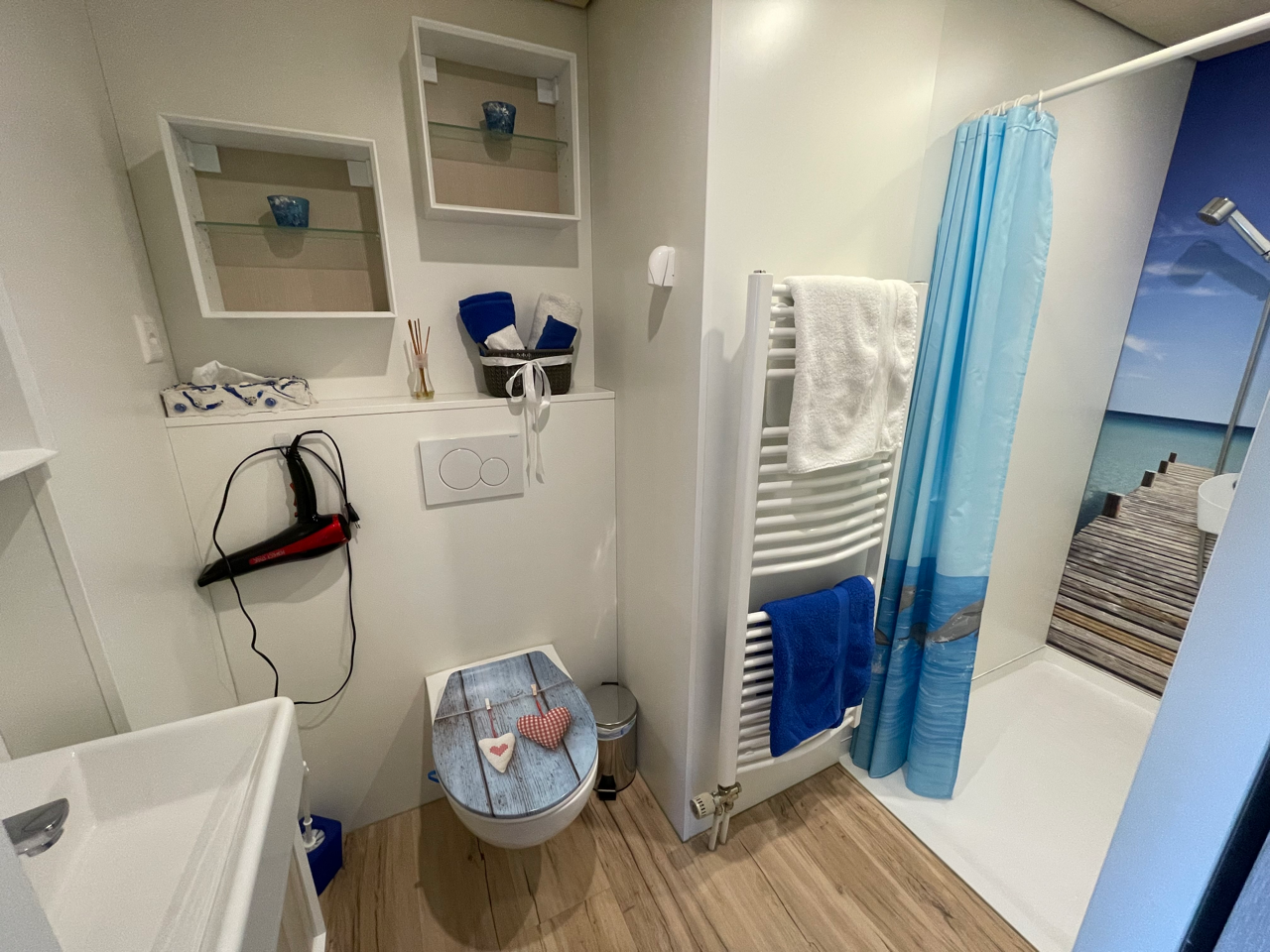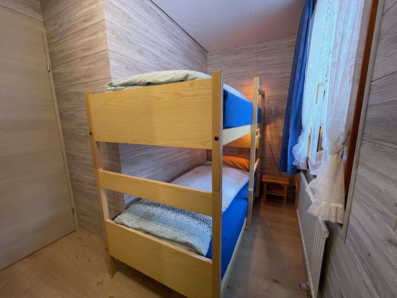 Ideal für Familien, Senioren oder Geschäftsleute. Am Dorfrand liegend, erreichen Sie über die Wendeltreppe hinunter ins Untergeschoss die Ferienwohnung mit separatem Wohnungseingang. Ein geräumiges Entré mit Garderobe empfängt Sie. Die moderne, offene Küche mit Geschirrspüler liegt zusammen mit dem Wohnzimmer, von dem aus über eine leicht zu öffnende Schiebetüre der grosse Balkon begangen wird. Die Nasszelle besteht aus einer Dusche, WC und Lavabo. Drei Schlafzimmer stehen wahlweise zur Verfügung: Ein Elternschlafzimmer mit zwei Matratzen 90cm Breite, ein Schlafzimmer mit einem französischen Bett, 160cm Breite mit integrierter Nasszelle (WC, Lavabo und Dusche) und einem kleinen Kinderzimmer mit Etagenbett, 2x190 x 80cm Matratzen. Ein Geschoss tiefer liegt die Spiel- Liegewies. Es besteht auch die Möglichkeit Waschmaschine und Tumbler zu benutzen.