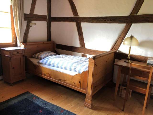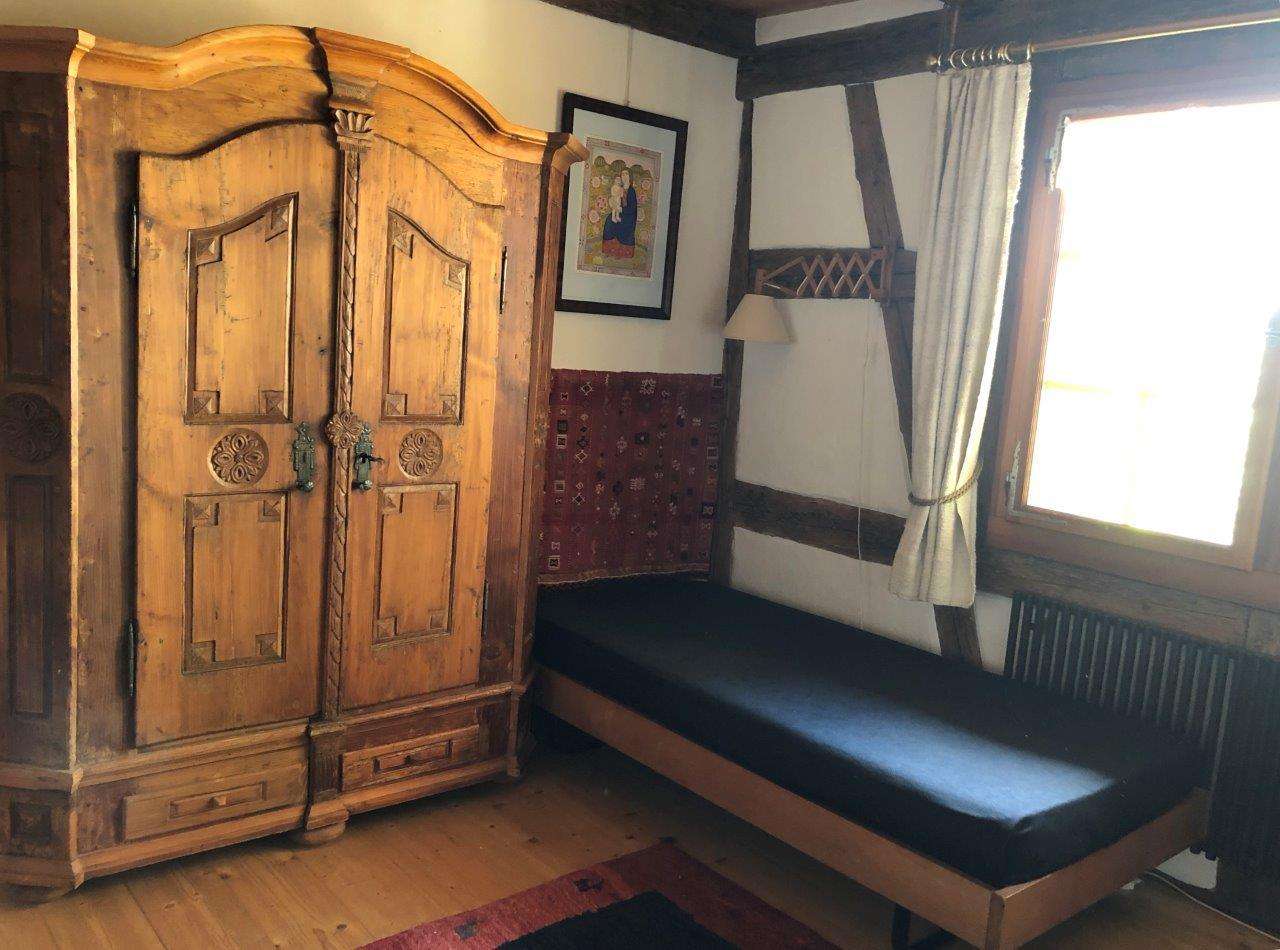 Die 2.5-Zimmerwohnung bietet Platz für 2–3 Personen, die 3.5-Zimmerwohnung für 4–5 Personen. Die Wohnungen liegen im ersten Stock des schmucken, renovierten Riegelhauses. In der Küche befindet sich ein Esstisch. Das ganze Haus ist mit Granderwasser ausgestattet.
