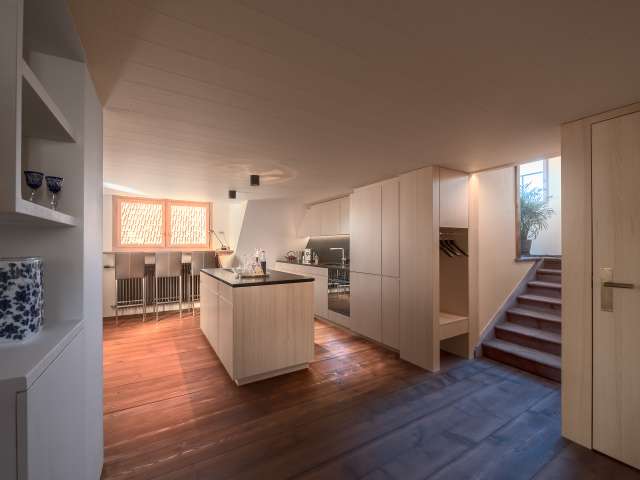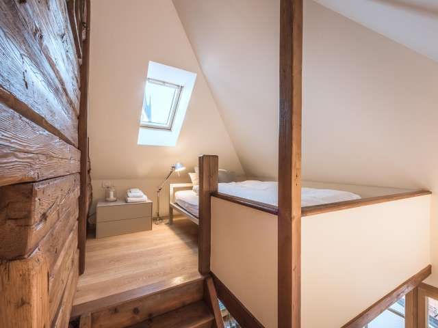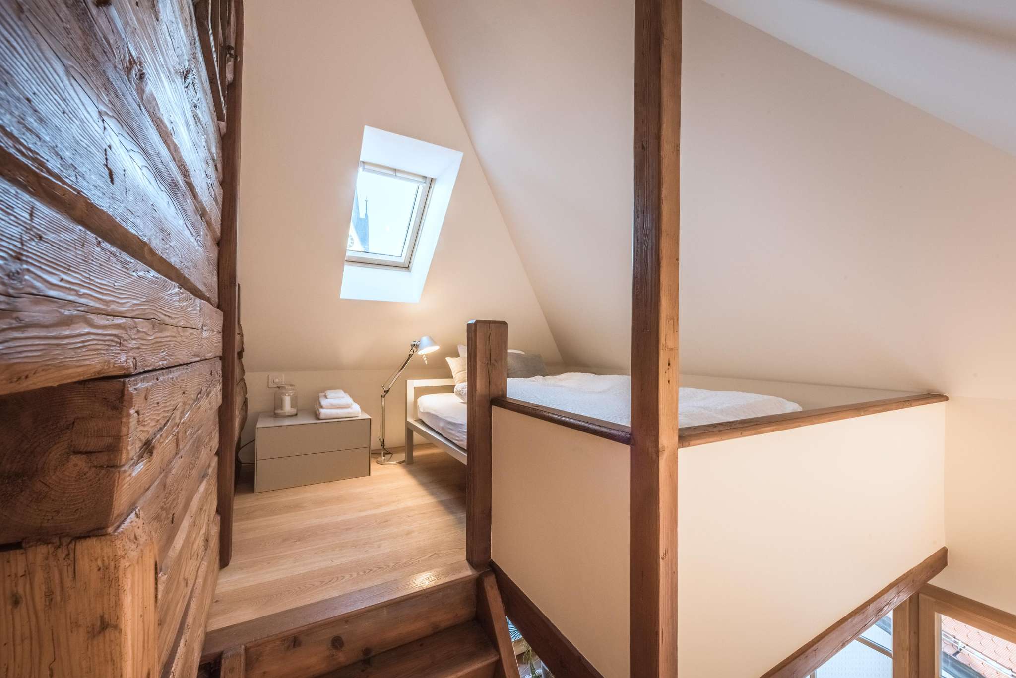 Die Wohnung "Alpsteinpanorama" hält was der Name verspricht: Die Aussicht aus der Vogelperspektive ist einzigartig. Hier gibt es auf zwei Stockwerken mit 150 m2 Wohnfläche viele schöne Orte zum Verweilen. Der sonnige Westbalkon auf dem Zwischengeschoss öffnet den Blick auf zwei Seiten.