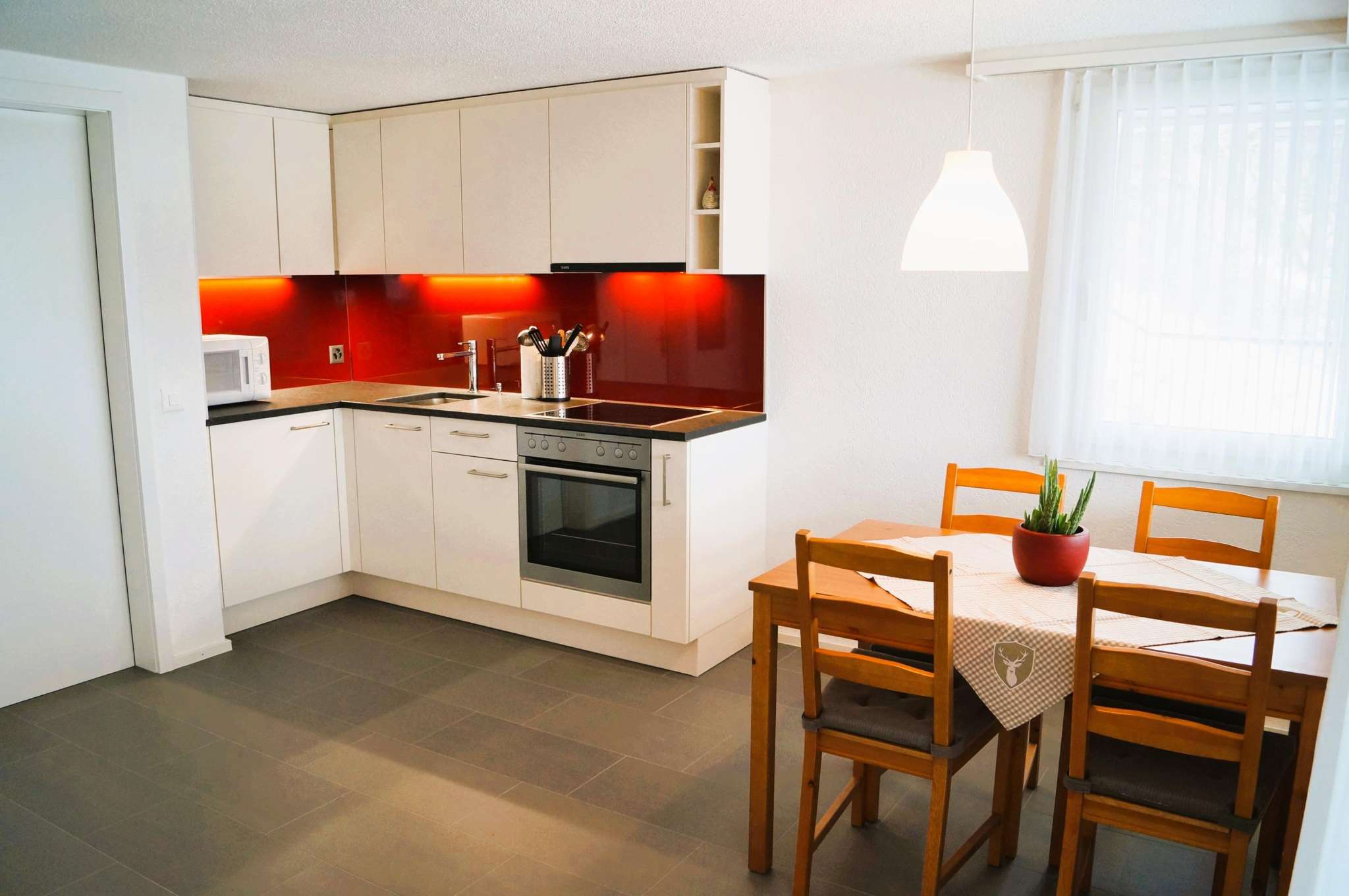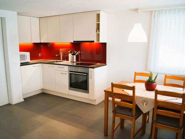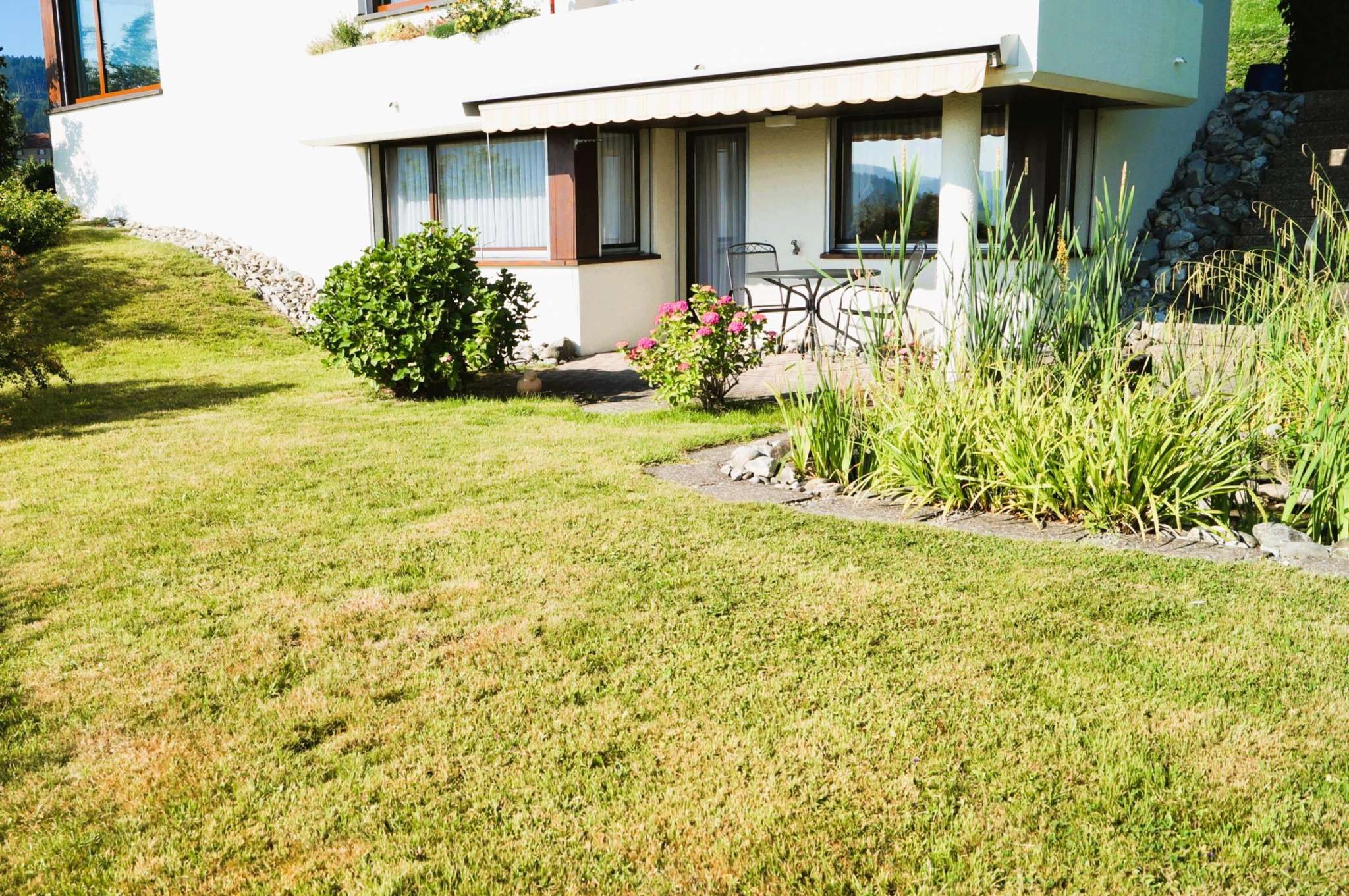 Die moderne Ferienwohnung wurde 2016 vollständig renoviert und neu möbliert. Die Wohnung verfügt über einen separaten Eingang sowie einen Aussenparkplatz. Entspannen Sie sich im eigenen Gartenbereich mit Sitzplatz, Liegewiese, Biotop und Gartengrill.