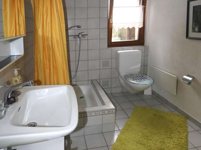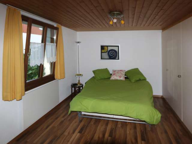Die Wohnung umfasst zwei Zimmer, eines als Doppelschlafzimmer und eines als Wohnzimmer mit einem Bettsofa. Grosszügiges Bad mit Dusche und Küche. Grosser gedeckter Aussenbereich im Anbau mit Cheminée, auch geeignet für Raucher. Rasen mit Sitzplatz. Parkplatz für max. 2 Autos und Velos. Nur wenige Autominuten bis zu Geschäften, Restaurants, zwei Badeplätzen am See und mehreren Bahnhöfen sowie zur Fähre nach Deutschland. Ein idealer Ort für Aktiv-Urlaub. Die Besitzer sind sehr hilfsbereit, für Fragen offen und helfen gerne auch bei der Auswahl von Ausflugszielen. Haustiere erlaubt.