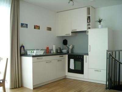 Die Ferienwohnung in Heiden bietet eine helle Wohnlandschaft mit moderner, offener Küche und komfortabler Ausstattung. Küche und Wohnbereich bilden den Mittelpunkt, während ein abdunkelbares Schlafzimmer Rückzugsmöglichkeiten schafft. Für den Alltag stehen gemeinschaftlich nutzbare Waschmaschine und Trockner zur Verfügung.
