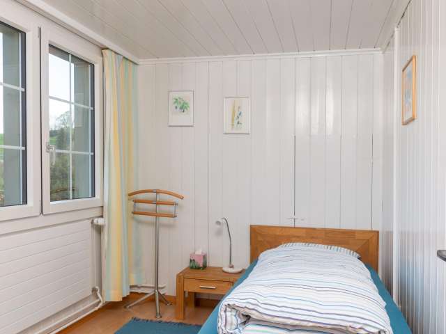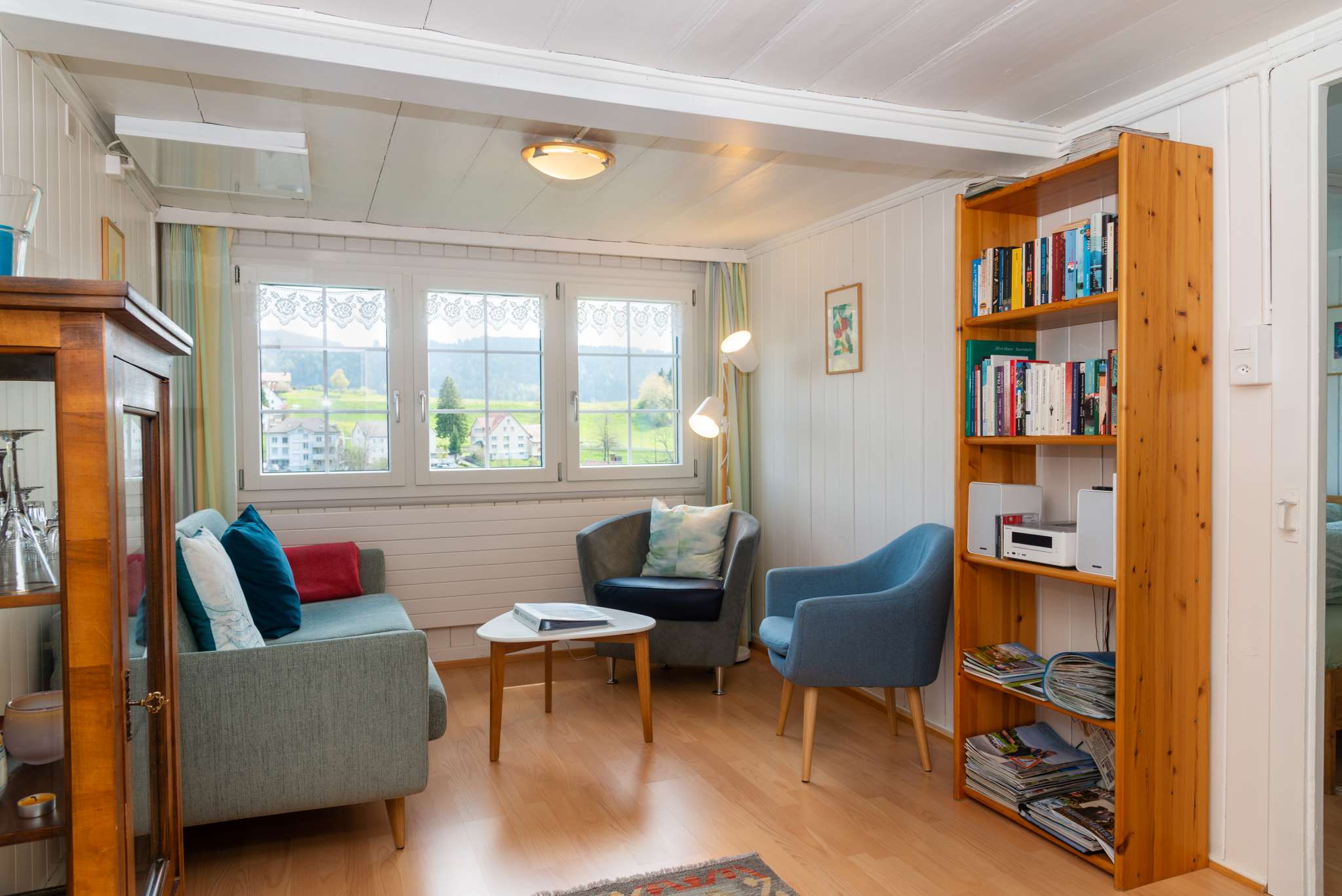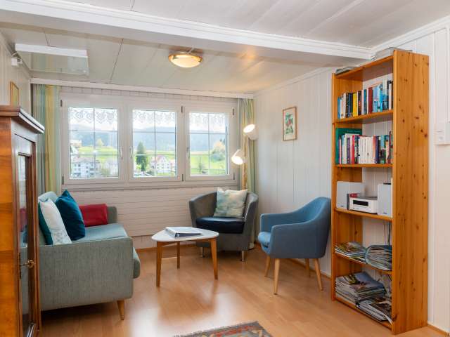 3-Zimmer-Wohnung mit einem Kachel- und einem Schwedenofen. Ruhig, sonnig und zentral gelegen. Gartenterrasse zur Mitbenützung, separater Eingang. Bett-, Küchen- und Frotteewäsche inklusive.