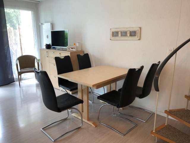 Die 2,5-Zimmer-Maisonette-Wohnung in Bad Ragaz bietet einen eigenen Hauseingang, einen Gartensitzplatz und einen Balkon. Sie liegt ruhig und zentral, nur 50 m von Migros und Coop entfernt, und ist ideal für Paare, Familien und Singles.