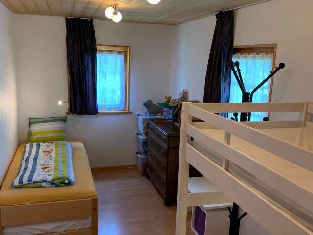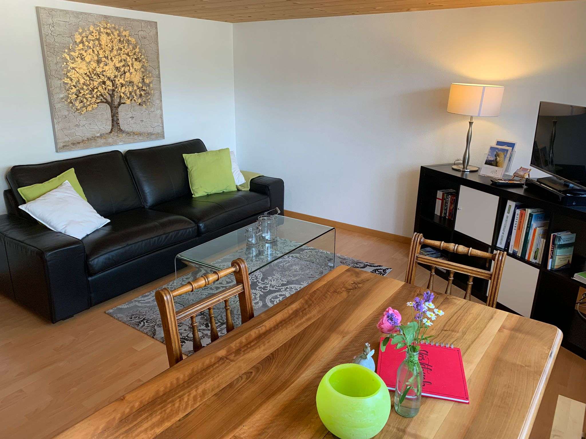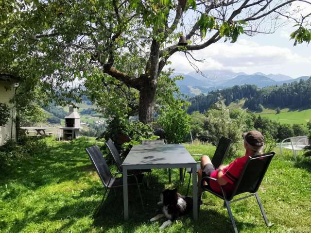 Ideal für Familien, Paare, Senioren, Ruhesuchende, Geschäftsleute, Naturfreunde usw. Abseits von Lärm und Hektik mit traumhafter Panorama-Sicht auf den Alpstein geniessen Sie hier Ihre Ferientage. Die Ferienwohnung mit separatem Eingang liegt auf 950 m. ü. M. ausserhalb von Urnäsch. Die gemütliche Wohnung bietet eine moderne Küche, eine Stube und zwei Schlafzimmer. Ein grosszügiger Garten mit viel Sonne, schattenspendenden Obstbäumen und herrlichem Weitblick lädt zum Verweilen ein. Zahllose Wanderwege warten darauf, entdeckt zu werden. Im nahegelegenen Wald lädt ein Tipi (inkl. Feuerstelle) auch Kinder zu Spass und Abenteuern ein. Falls sich jemand von den warmen Augen der Alpakas und Lamas berühren lassen möchte, wohnen diese zauberhaften Tiere nur ein paar Schritte von der Ferienwohnungstür entfernt und können jederzeit beim Fressen, Summen und Geniessen beobachtet werden. Monika Egli heisst Sie herzlich willkommen! Preise (exkl. Kurtaxe) Ganze Wohnung CHF 850.-- pro Woche für 2 Personen, jede zusätzliche Person CHF 200.--, pro Kind 2-12 J.: CHF 70.-- Bei kürzerer Aufenthaltsdauer: 2 Nächte für 2 Personen CHF 80.--/Person/Nacht für jede zusätzliche Person: CHF 80.--/Nacht Kinder 2-12 J.: CHF 35.--/Kind/Nacht Ab 3 Nächten für 2 Personen CHF 70.--/Person/Nacht Kinder 2-12 J.: CHF 25.--/Kind/Nacht Einzelbelegung ganze Wohnung ab 2 Nächten CHF 105.--/Person/Nacht Reinigung pauschal: CHF 140.--/Aufenthalt Im Preis inbegriffen sind Bett-, Bad- und Küchenwäsche. Für die Kinder hat es zahlreiche Spielsachen zum Benützen und ganz viel Platz in der freien Natur. Ab zwei Übernachtungen kann von der OKSAR Ferienkarte profitiert werden. Gerne teilt Monika Egli Informationen darüber mit.