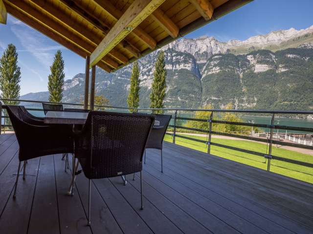 Die Ferienwohnungen Nr. 129 & 130 vom Haus A3 im Walensee Resort in Unterterzen haben eine wunderschöne Aussicht auf den Walensee und die umliegenden Churfirsten. Die Ferienwohnungen sind ein idealer Ausgangspunkt für Wanderausflüge sowie See- und weitere Outdooraktivitäten. Die ruhig gelegenen Wohnungen sind nur wenige Meter vom Bahnhof, den Bergbahnen sowie den nächsten Einkaufsmöglichkeiten entfernt.