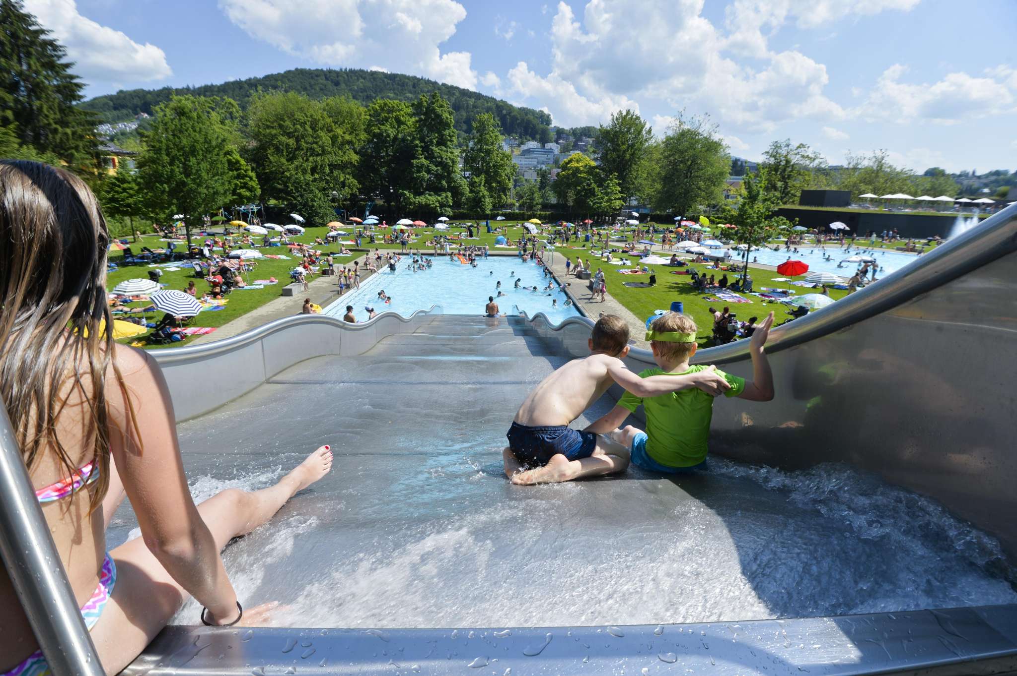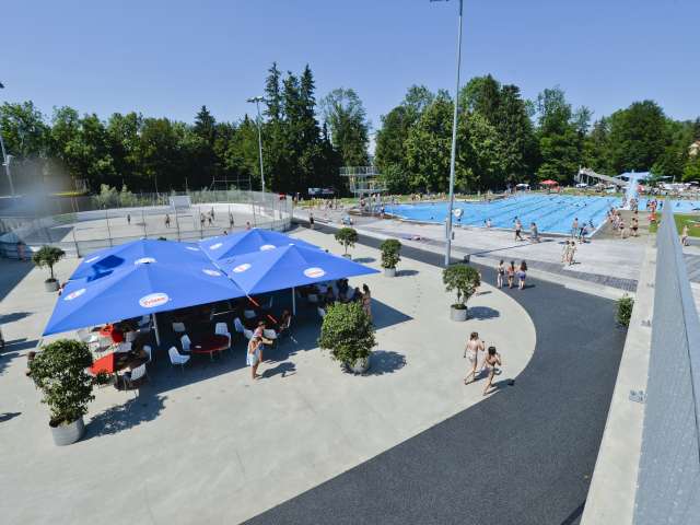 Das Freibad Lerchenfeld bietet den idealen Wasserspass für alle, die eine Abkühlung wünschen – ob beim Streckenschwimmen im 50m-Becken, Turmspringen in der Sprungbucht oder im Plauschbecken mit zwei Nackenmassagestrahlen. Für die jüngeren Badegäste bietet das Freibad Lerchenfeld vier Kinderbecken mit Sonnensegel sowie eine Breitflächenrutsche zu Erfrischung an. Für das sportliche Vergnügen an Land ist ebenfalls gesorgt. So stehen Beachvolleyball- und Basketballfelder, Tischtennis-Tische und ein abenteuerlicher Spielplatz zur Verfügung.