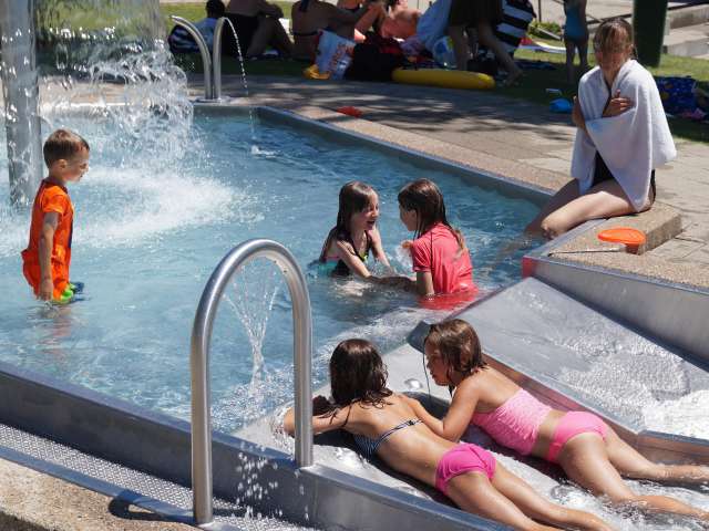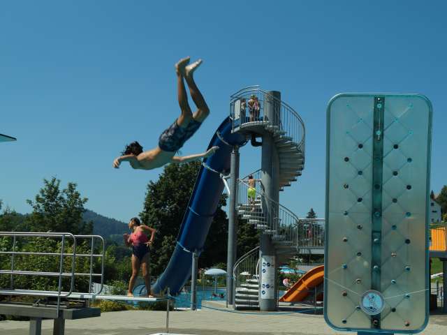 Das Freibad verfügt über ein 50-m-Schwimmerbecken, eine Sprunganlage, eine Breitwellenrutsche, eine »Freefall»-Rutschbahn, ein Strömungskanal mit Wasserwerfer und Wasserpilz und ein solarbeheiztes Kinder-Erlebnis-Planschbecken. Im Freibad befindet sich zudem noch eine Ballspiel-Wiese, ein Beach-Volleyballfeld, ein XXL-Schachspiel und ein Kinderspielplatz. Verpflegen können sich die Gäste an der Grillstelle oder im Restaurant.