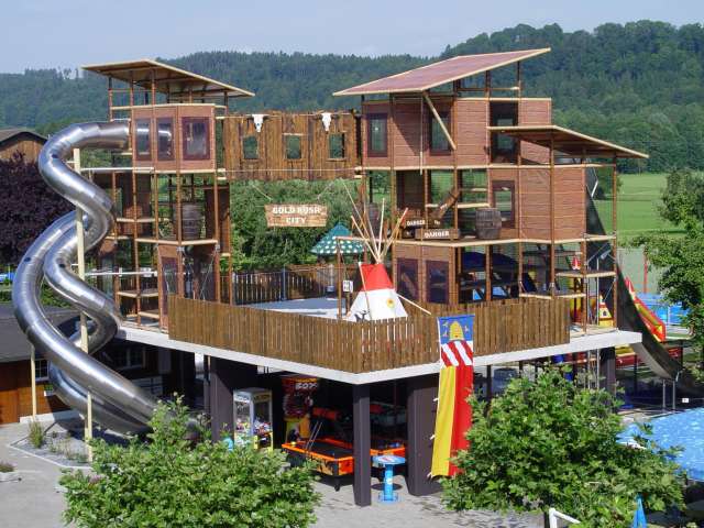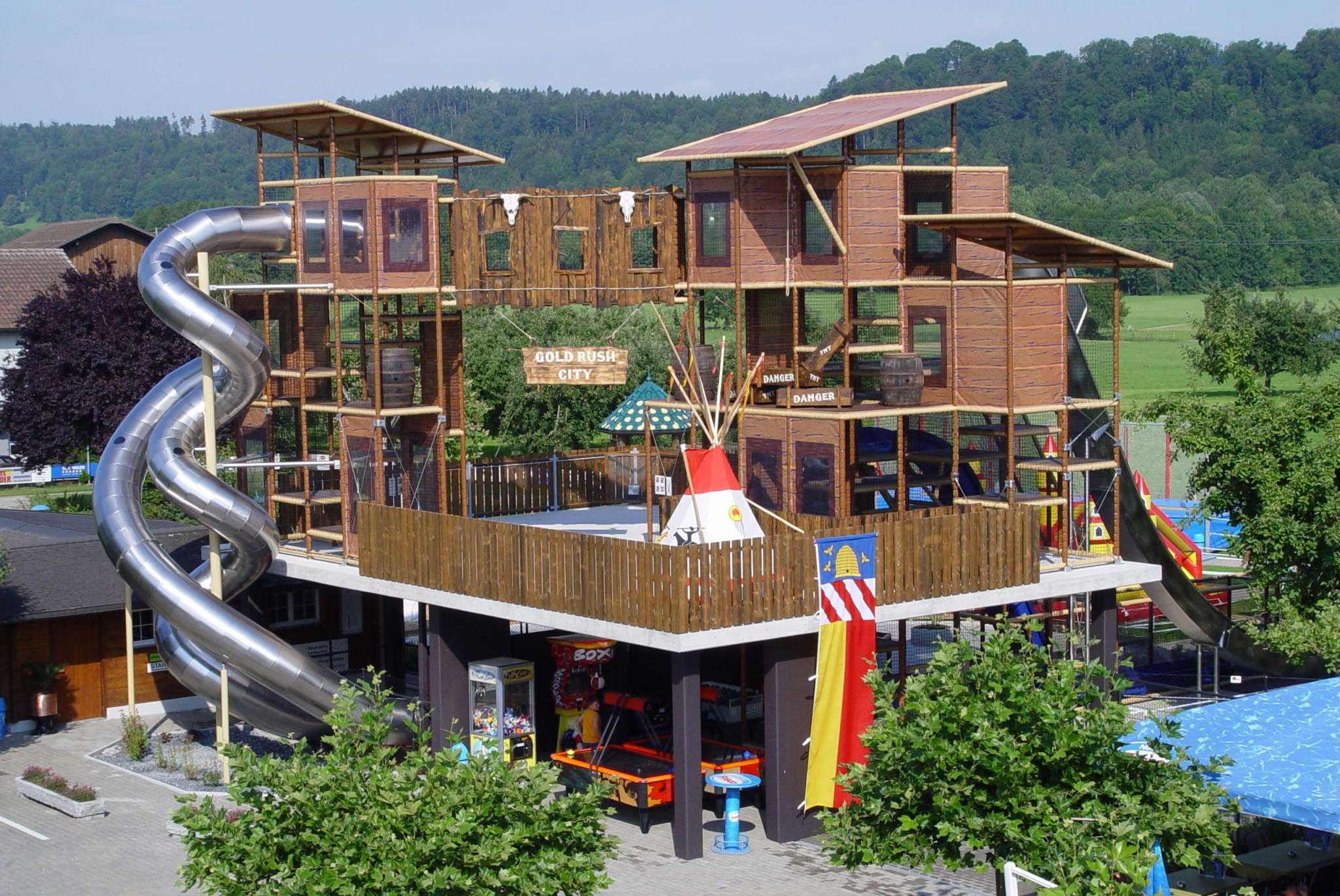 Die «Abentüürwält» im Outdoorbereich verfügt über einen 11 Meter hohen Rutschenturm im Western-Stil. Eine Hüpfburg, Trampoline, der Spaceball, eine Wasser-/Sandspielanlage sowie eine Spiellandschaft lassen den Besuch zum Erlebnis werden. Die «Spielschüür» ist ein Indoor-Spielplatz mit Trampolinen, Rutschen, Softball-Kanonen, einer Kletterwand uvm.