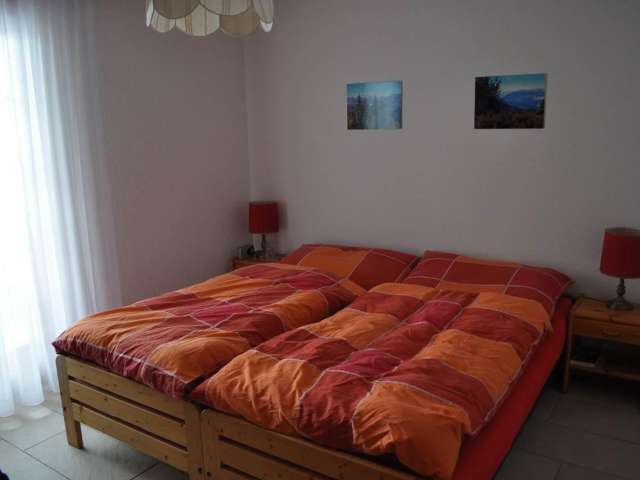 Die Wohnung ist gemütlich und komfortabel eingerichtet. Die ganze Wohnung verfügt über einen Plattenboden. Zur Wohnung gehört ein grosser Balkon mit Fernsicht.