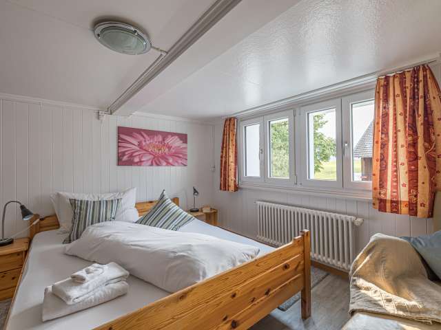Das Haus liegt mitten im Grünen, umgeben von einer schönen Gartenanlage und sanften Hügeln, ca. 300m vom Dorf Bächli entfernt.