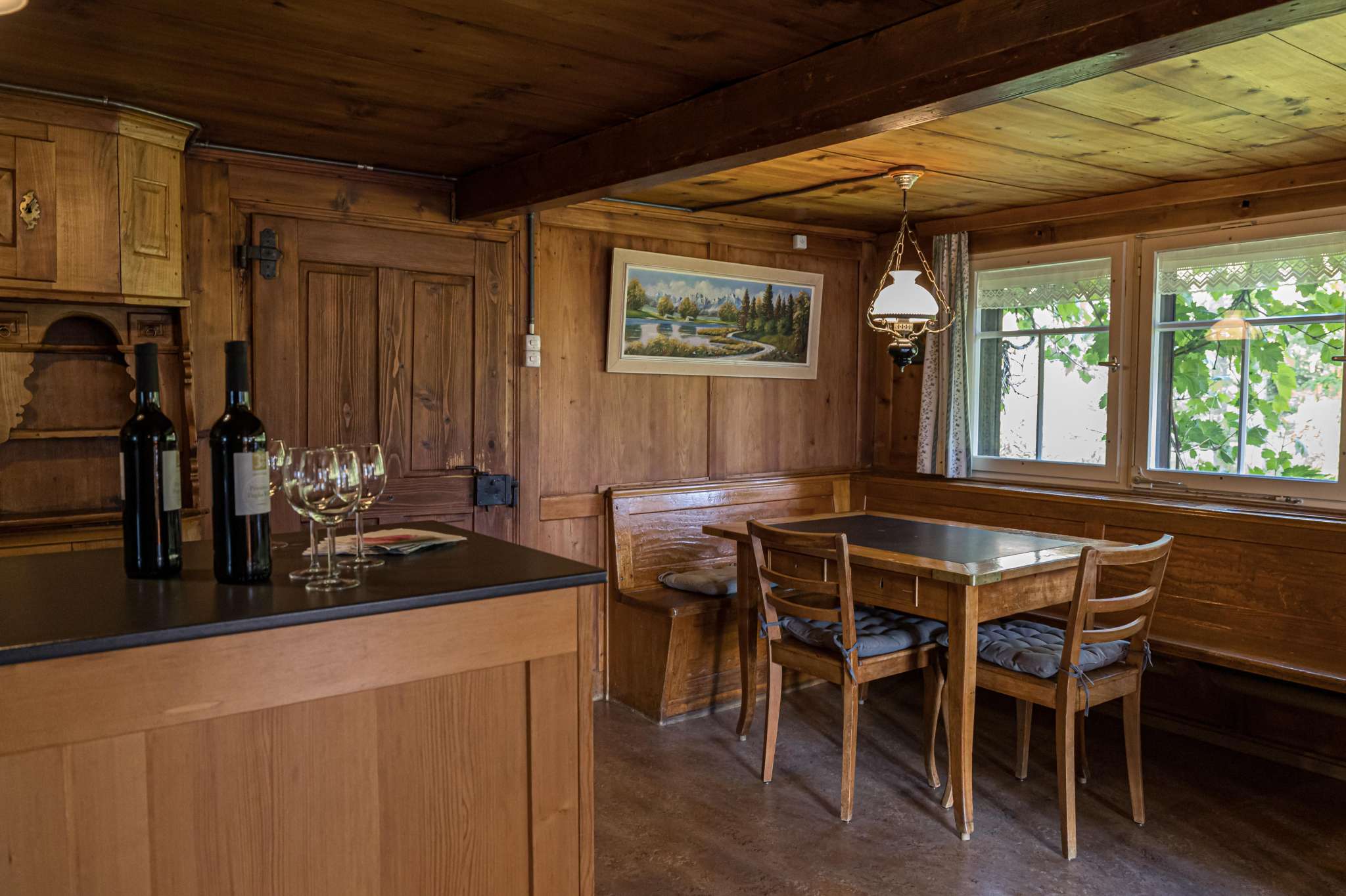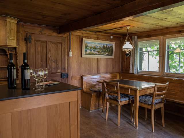 In der heimeligen und altehrwürdigen Gaststube mit dem grünen Kachelofen und den Schiefertischen spürt man eine herrliche Ambiente. Hier finden 18 bis 20 Personen Platz.