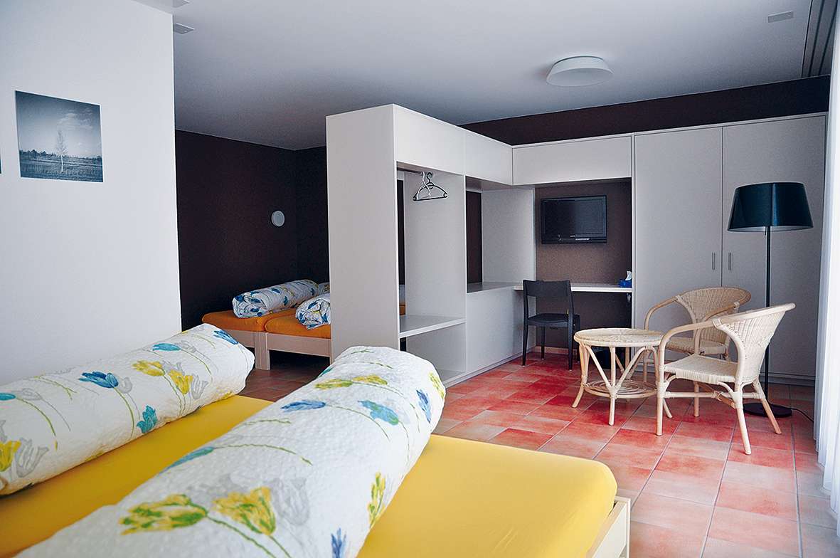 Die Gästezimmer richten sich voll und ganz nach den Bedürfnissen des unkomplizierten Gastes. Lichtdurchflutet, modern und farbig präsentieren sich die grosszügigen Schlafräume. Der ursprünglich 1962 erbaute Lindenhof wurde 1994 ausgebaut und im Jahr 2009 wurde ein moderner Gästekomplex mit insgesamt 16 Zimmern angegliedert.