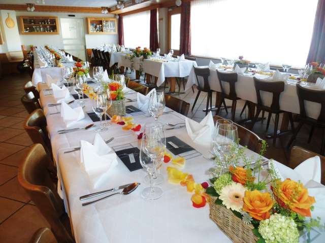 Das Küchenteam verwöhnt die Gäste mit frischen, saisonalen Gerichten. Die Zutaten stammen vorwiegend aus der Region. Das Restaurant mit den angrenzenden zwei Stübli bietet Platz für rund 120 Personen. Für geschlossene Gesellschaften lässt es sich zu einem gemütlichen Festsaal umwandeln. Auch die gedeckte Gartenterrasse lädt zum Schlemmen ein.