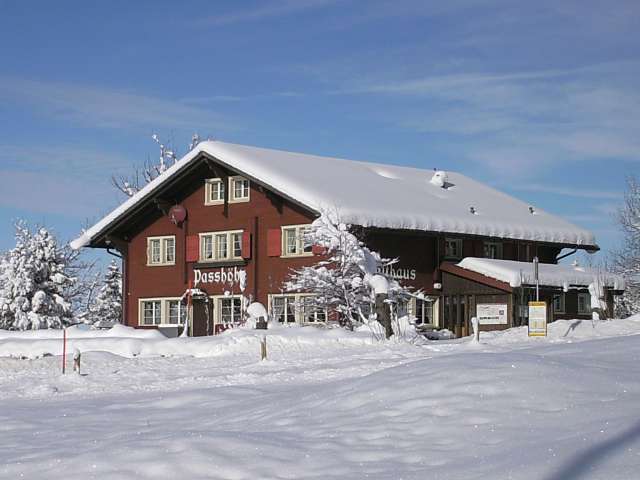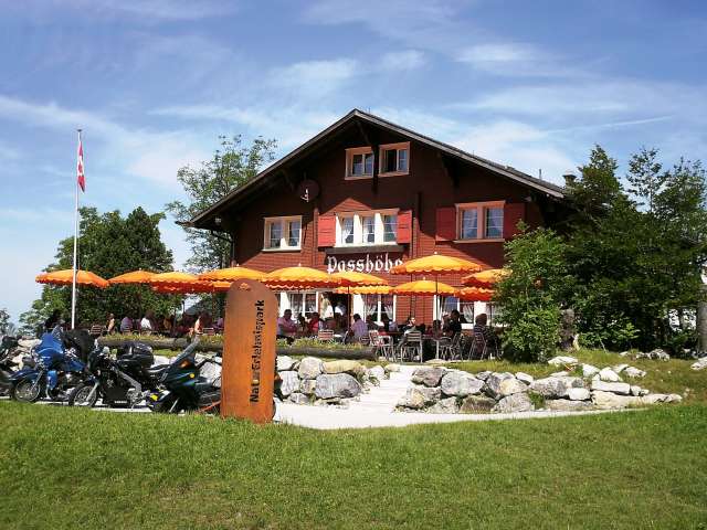 Wanderer unterwegs auf der Schwägalp brauchen keine Mittagsverpflegung im Rucksack mitzutragen - im Gasthaus Passhöhe finden sie sämtliche Bergwirtschaftsklassiker: Chäshörnli, Gerstensuppe und Wienerli, Sennenrösti oder ganz einfach Schnitzel-Pommes. Als Dessert ist der hausgemachte Schlorzifladen übrigens sehr empfehlenswert.