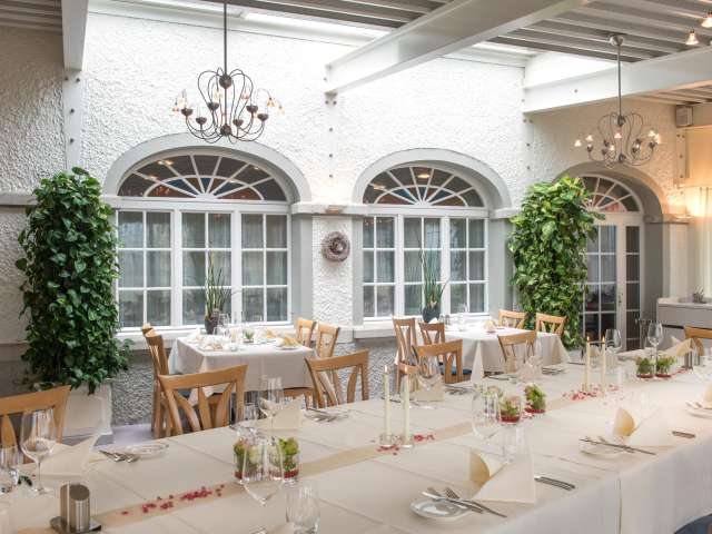 Im Wintergarten ist Platz für bis zu 60 Personen für Gesellschaften und Familienfeiern.