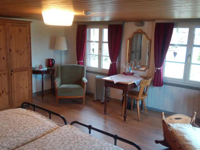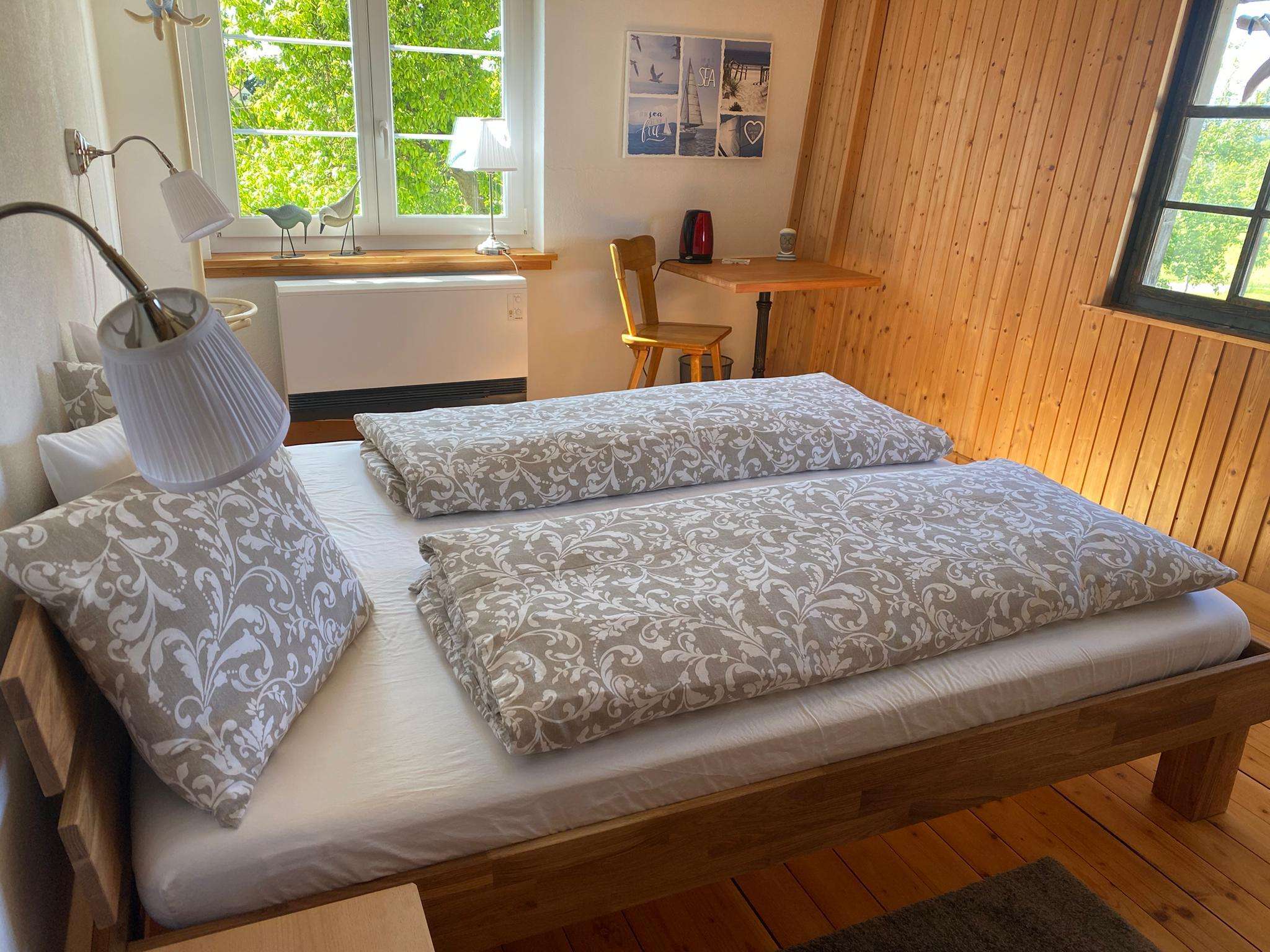 Die zwei gemütlich eingerichteten Gästezimmer mit Gemeinschaftsbad runden das Angebot ab. Gäste geniessen hier die Ruhe im Unterdorf von Steinebrunn und die familiäre Gastfreundschaft. Ideal für einen Kurzurlaub oder für Besucher auf der Durchreise.