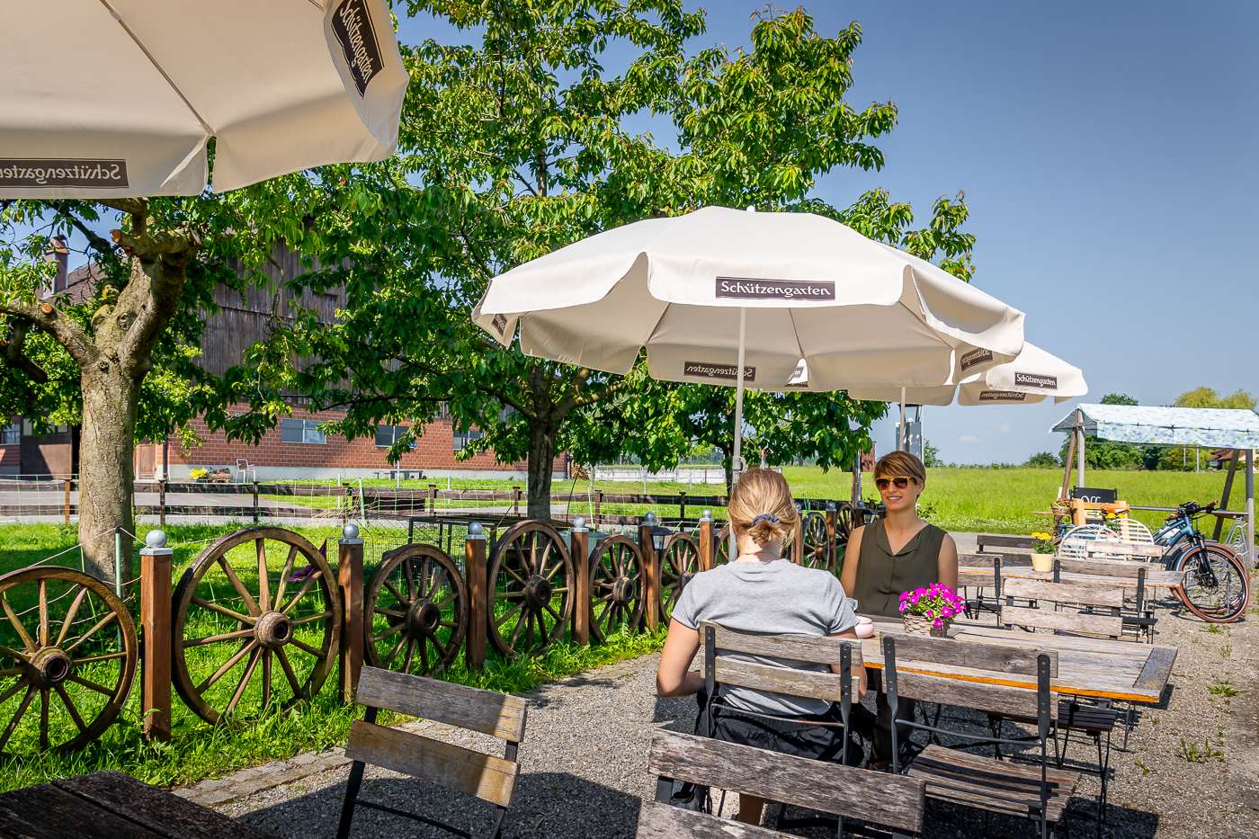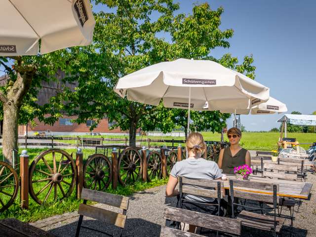 In der gemütlich eingerichteten Gaststube und bei schönem Wetter im Garten lässt es sich herrlich entspannen. Ein in die Gaststube integrierter Geschenkladen sorgt immer für eine gemütliche Atmosphäre und für die passende saisonale Dekoration. Auch die kleinen Gäste kommen nicht zu kurz: Die Kinder können im Segelboot-Sandkasten spielen oder sich an den Tieren erfreuen!